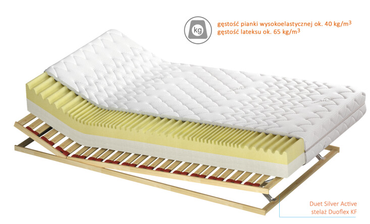 ↪ górna warstwa to konturowo cięta pianka wysokoelastyczna Kaltschaum o gęstości ok. 40 kg/m3 i wysokości 9 cm