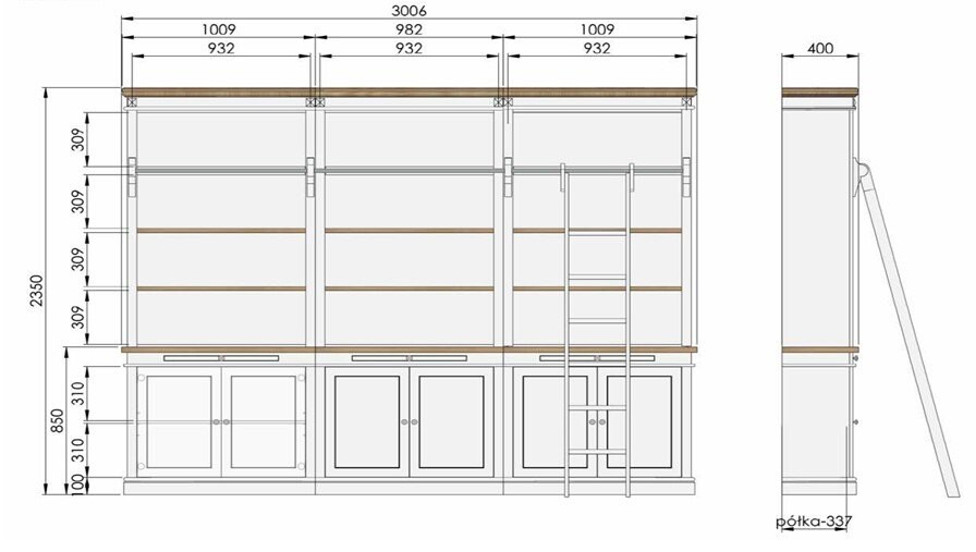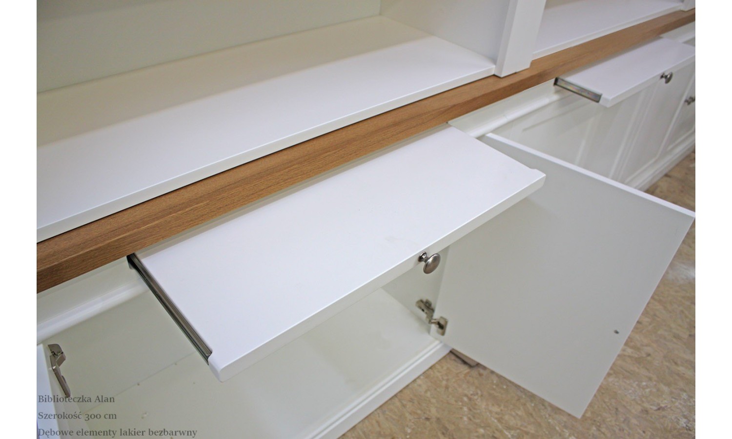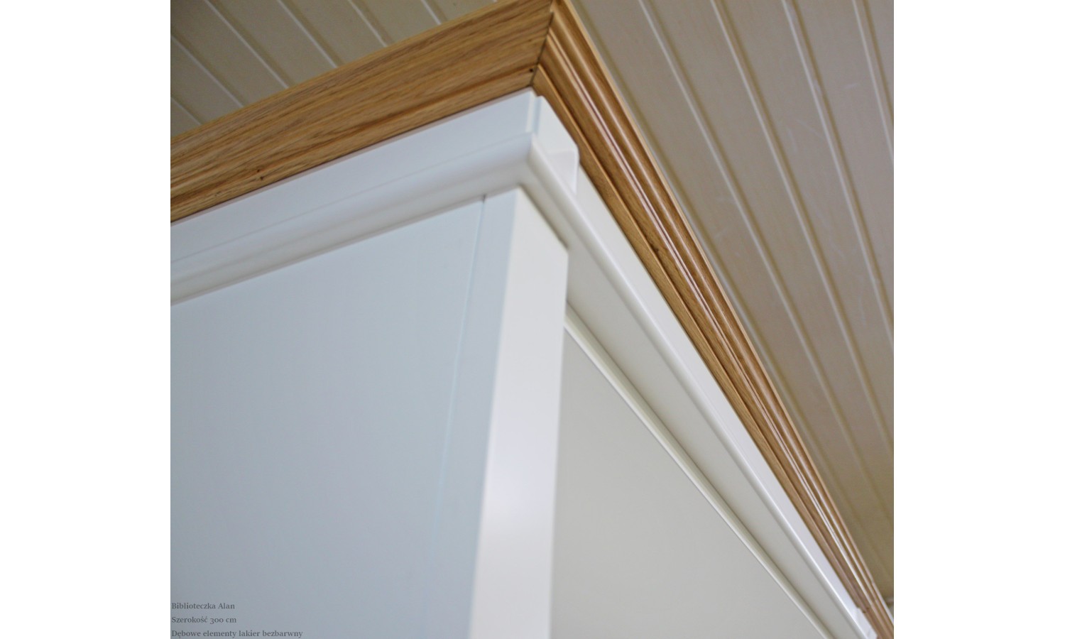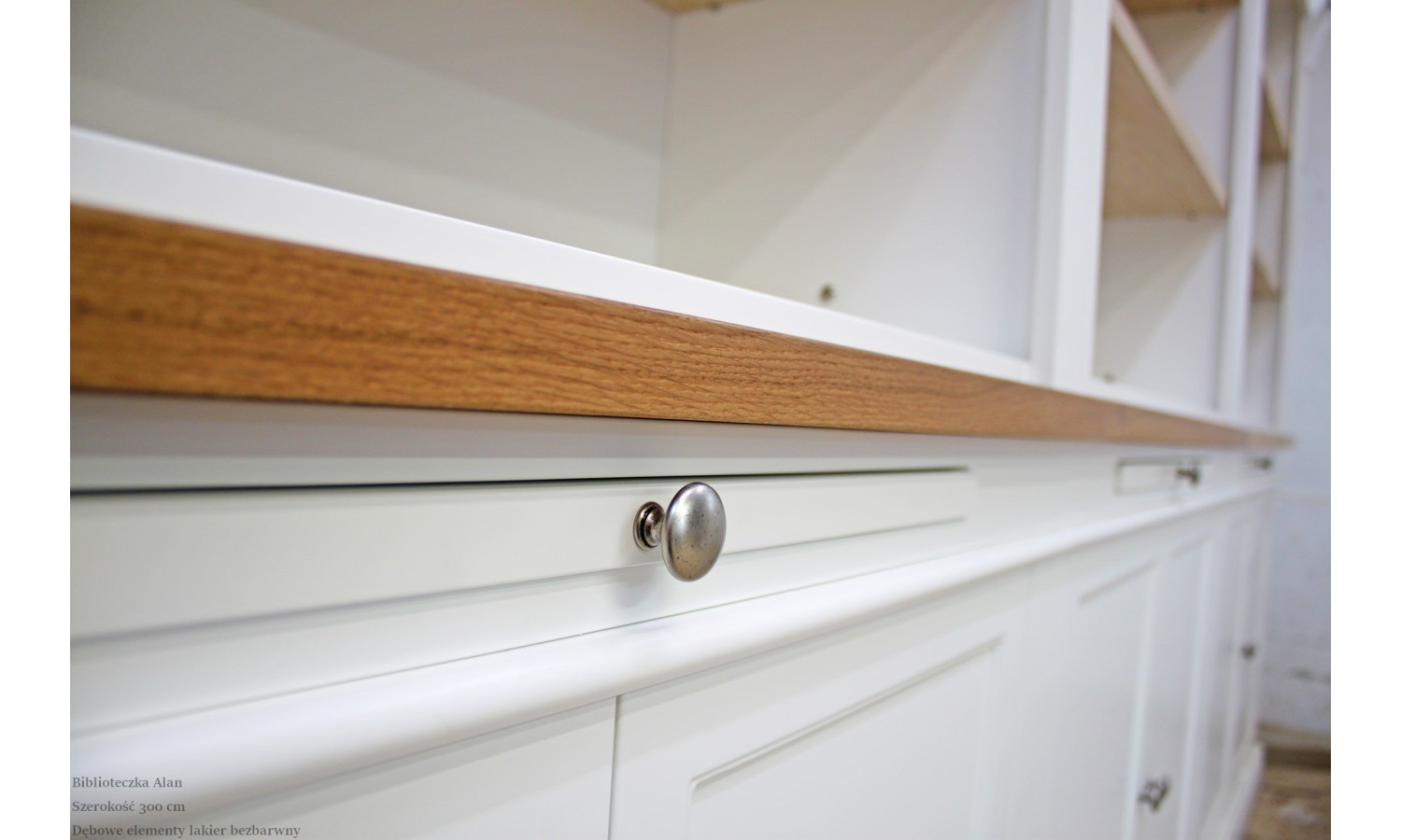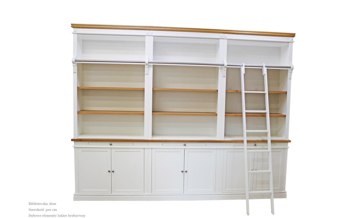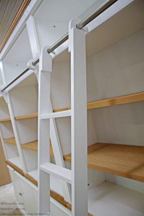 Projekt Alan łączy w sobie nowoczesny design z praktycznymi rozwiązaniami. Drabina dodaje uroku i umożliwia dostęp do wyższych półek, gdzie możesz wyeksponować cenne tomiska i ozdoby.