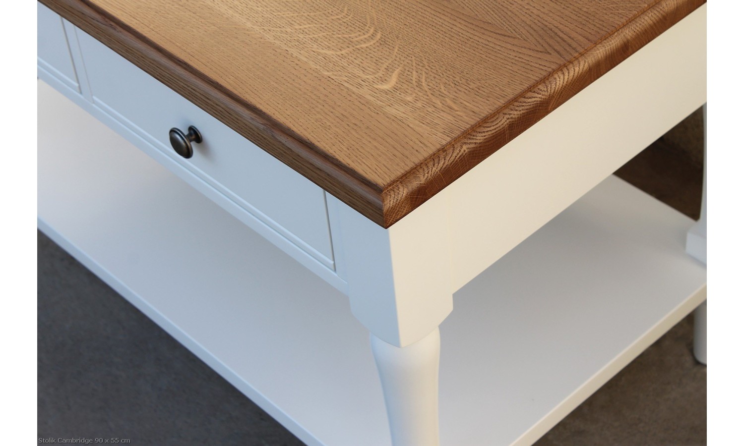 Jednym z atutów stolika Cambridge jest szeroka gama dostępnych wybarwień, które można wybrać z palety RAL lub ICA. Aby ułatwić wybór, oferujemy darmowe próbki wybarwień. Stolik dostarczany jest w całości, gotowy do użytku od razu po dostawie. Standardowo blat stolika jest klejony na mikrowczep, co zapewnia jego wytrzymałość, ale dla bardziej wymagających klientów dostępna jest opcja blatu z długich listew. Dodatkowo, stolik Cambridge można wyposażyć w uchwyty według własnego wyboru, co dodaje mu indywidualnego charakteru.