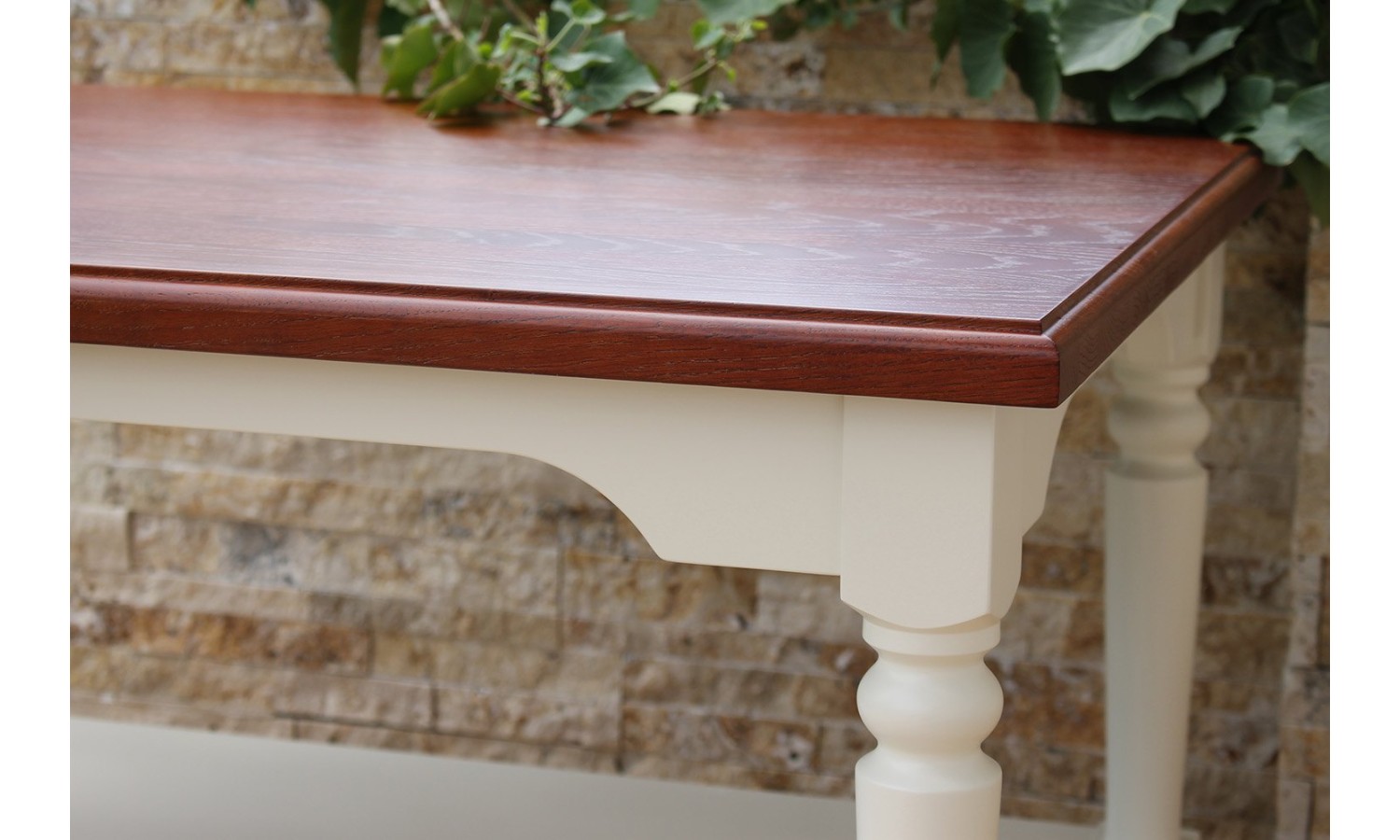 - Mebel jest wykonany z litego drewna oraz płyty meblowej, blat dębowy