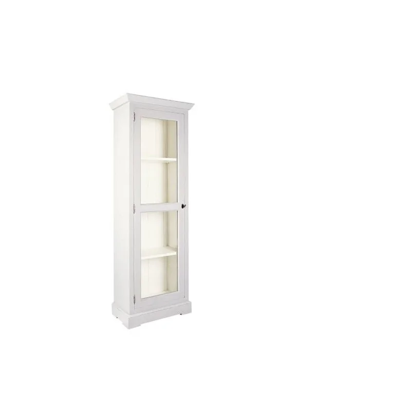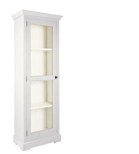 Prowansalska witryna Małgorzata to doskonałość formy w najczystszej postaci. Stylowy mebel w swoim designie czerpie z doświadczeń wzornictwa prowansalskiego, łącząc w jednej bryle prostą formę, biały kolor lakieru i charakterystyczne zwieńczenia. Prowansalska witryna wyróżnia się niewielką szerokością przyjmując postać kominka, idealnego do małych wnętrz. Dzięki swoim parametrom i efektownym wykończeniom boków może być eksponowana w narożniku lub w centralnym miejscu pokoju, pod ścianą. To doskonały dodatek do niewielkiej stylowej jadalni, ale również do saloniku i gabinetu, w którym będzie pełnić funkcję mebla ekspozycyjnego. Prowansalska witryna stanowi jedną zwartą całość i zamykana jest pojedynczymi, przeszklonymi drzwiami zajmującymi całą jej wysokość. Dodatkowa poprzeczna listwa w połowie wysokości szyby zmniejsza jej powierzchnię, dzięki czemu jest ona bardziej odporna na stłuczenia i pękanie. Duża, wypełniona półkami powierzchnia wnętrza pozwala na piękne wyeksponowanie wykwintnych naczyń, bibelotów, kolekcji hobbystycznej i innych efektownych przedmiotów. Prowansalska witryna Małgorzata to mebel, który wnosi do wystroju sporo wykwintności i elegancji.