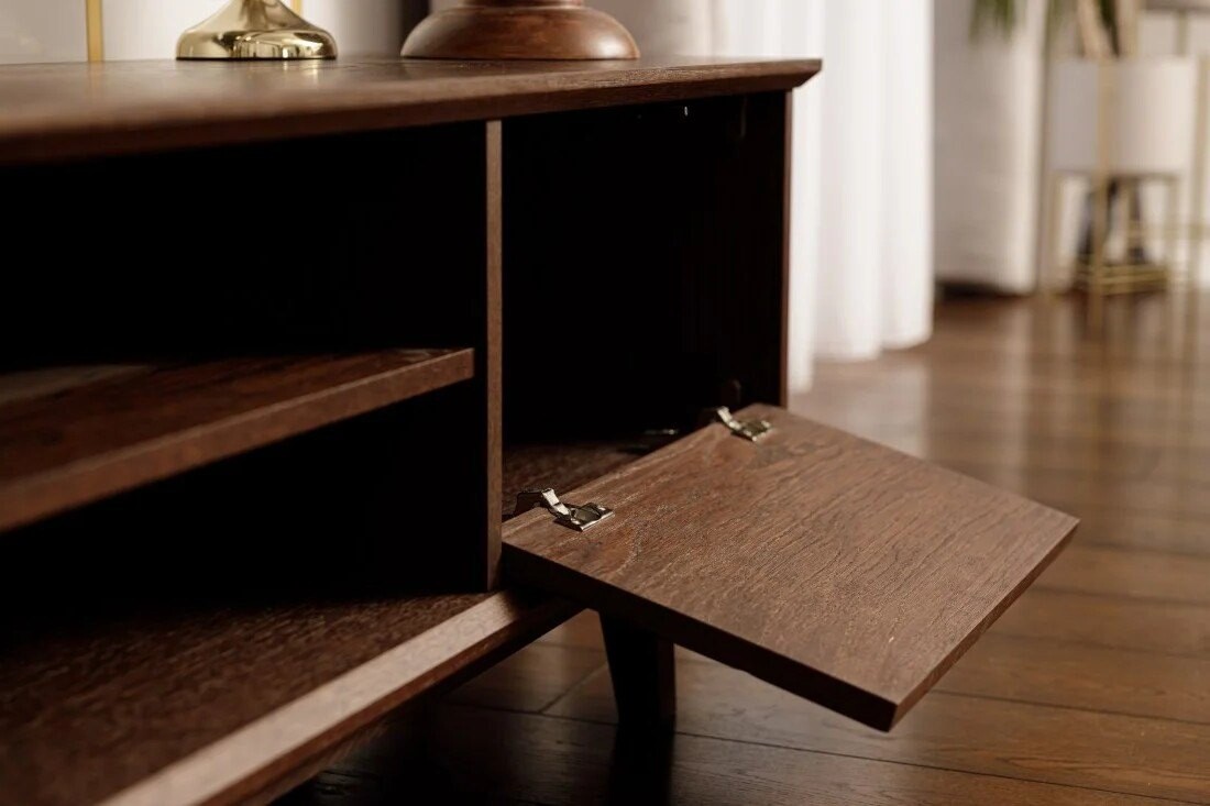 Jord to propozycja dla tych, którzy cenią funkcjonalność w eleganckiej formie. Komoda idealnie odnajdzie się w roli szafki RTV w salonie lub przestrzeni multimedialnej, dodając wnętrzu charakteru bez nachalności. Jej przemyślany design łączy w sobie rzemieślniczy detal z nowoczesną prostotą – to mebel, który pozostaje stylowy na długie lata.