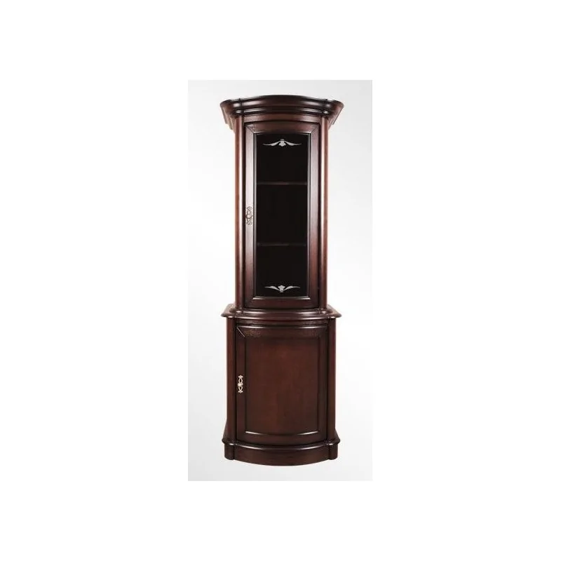 Smukła witryna o wysublimowanym wyglądzie nadaje się do wnętrz estetycznych, urządzanych z duchem retro i klasyki. Może być pojedynczym meblem, a także dopełniającym wszystkie rozwiązania z kolekcji „Nefryt”. Niezależnie od naszego wyboru, warto przyjrzeć się bliżej tej wyjątkowej komodzie. Smukłość zapewnia dopasowanie się do każdej, nawet najmniejszej przestrzeni. Idealna wysokość zapewnia przechowywanie dużej ilości rzeczy. Przepiękne, własnoręcznie rzeźbione zwieńczenia zdobią całą formę, nadając jej jeszcze więcej elegancji i bogactwa. Oszklona część górna wydobędzie piękno i wyróżni każdą rzecz, która znajdzie się za drzwiczkami. Czy postawimy tam kolekcję trunków, a może będą to pamiątki rodzinne? To wszystko zależy od naszego gustu i upodobań. Spójrzmy na dostojne uchwyty, które dopełniają całość i gwarantują łatwe otwieranie, zamykanie. Lekki połysk emanuje na całą przestrzeń, tworząc pałacowy, wręcz nastrój. Komoda, witryna Nefryt jest wyjątkowa, ale również trwała i solidna.