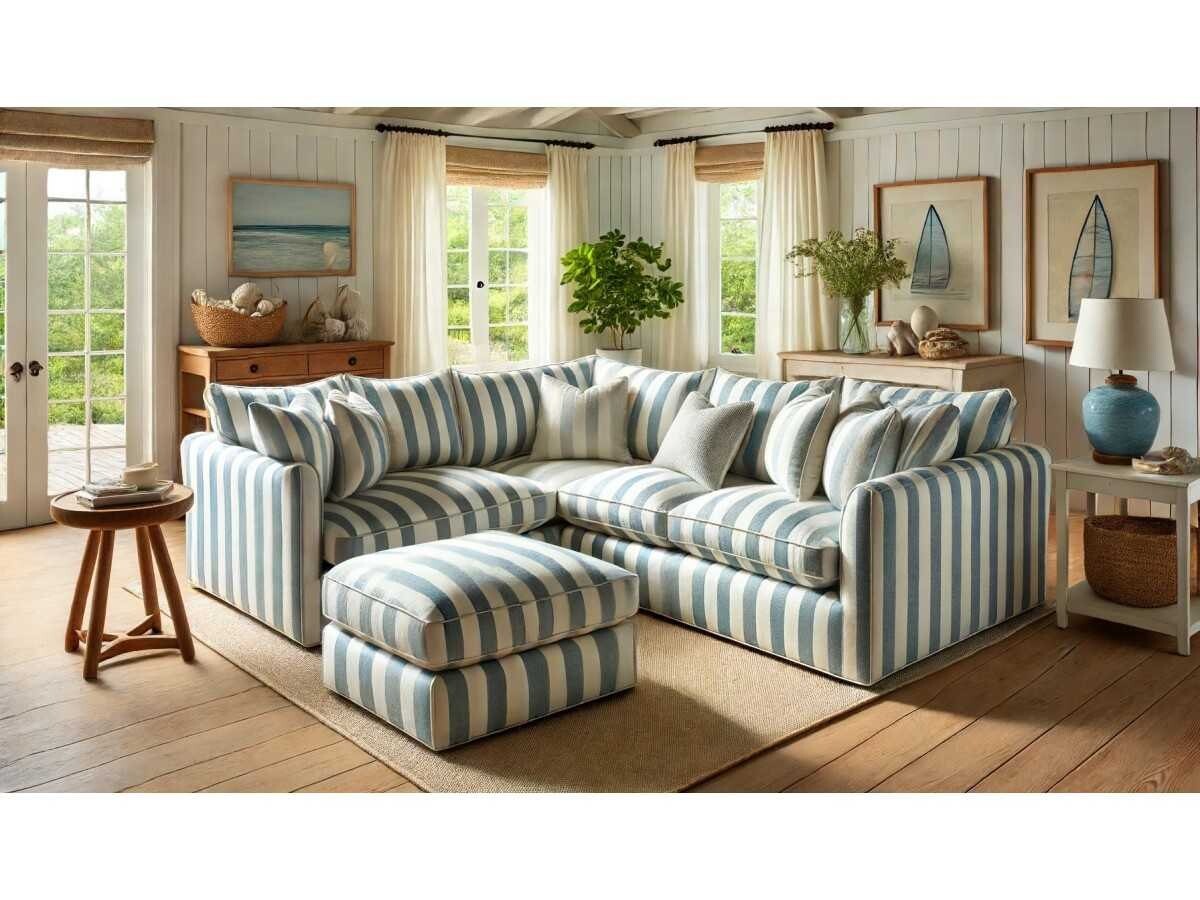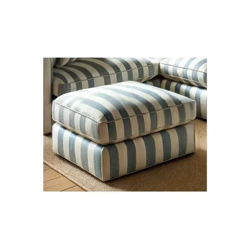Pufa Loara to stylowy dodatek do każdego wnętrza, zaprojektowany w zgodzie z elegancką estetyką marynistyczną. Pufa wyróżnia się tapicerką w charakterystyczne biało-niebieskie pasy, które nadają jej lekkości i świeżości. Konstrukcja oparta jest na solidnym stelażu z drewna, co gwarantuje jej stabilność oraz trwałość. Miękkie wypełnienie siedziska z wysokoelastycznej pianki zapewnia wygodę, a jednocześnie zachowuje pierwotny kształt nawet po długotrwałym użytkowaniu. Subtelne obszycia wokół krawędzi podkreślają precyzyjne wykończenie mebla, dzięki czemu pufa Loara idealnie komponuje się z innymi elementami tej kolekcji.