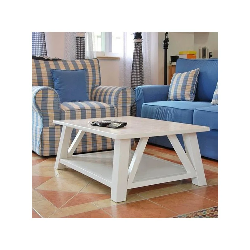 Stolik kawowy w stylu skandynawskim Adriano każdym detalem oddaje klimat surowej Skandynawii oraz typowy dla jej wzornictwa związek pomiędzy prostotą, elegancją i funkcjonalnością. Kompozycja modelu jest stosunkowo ciężka wizualnie i dzięki temu tworząca wrażenie bardzo stabilnej. Ten szczególny efekt model zawdzięcza kształtowi i ustawieniu nóg, które nie tylko są znacznie grubsze i masywniejsze od pozostałych elementów konstrukcji, ale też wychylone na zewnątrz w kierunku podłoża. Widziany z boku model tworzy formę trapezu, którego przestrzeń ogranicza blat i umieszczona nad podłogą półka. Pomiędzy te dwie drewniane płyty dodatkowo wkomponowano podpierające blat belki układające się drugi trapez o bardziej nachylonych bokach. Taka konstrukcja zdecydowanie wzmacnia płytę blatu, pozwalając na większe obciążenia. Atutem stolika są jego wymiary, bowiem zarówno blat, jak i dolna półka oferują bardzo dużo miejsca na poczęstunek czy stylowe dekoracje. Stylowy model swój charakter zawdzięcza też ciekawej fakturze powierzchni blatu i półki z wyraźnie zarysowanymi liniami pojedynczych desek. Stolik kawowy w stylu skandynawskim Adriano jest idealnym meblem do strefy wypoczynkowej wyposażonej w kanapę i fotele. Biały kolor nadaje mu znamion uniwersalności, ale mebel można zamówić w innych kolorach dopasowując go do bardziej nowoczesnych stylizacji wnętrz.