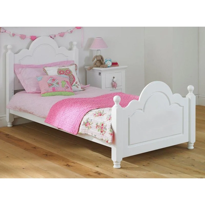 Stylizowane łóżko dla dziecka Selene to model wyróżniający się fantazyjnym kształtem oraz niespotykanym wzornictwem. Mebel - ze względu na zastosowanie subtelnych detali - przypadnie do gustu małym księżniczkom i podkreśli dziewczęcy charakter sypialni. Stylizowane łóżko dla dziecka Selene charakteryzuje się prostą, drewnianą ramą, jednak na szczególną uwagę zasługuje wykończenie szczytów. Wezgłowia mają nierównomierny, półkolisty kształt, a dodatkowo ozdobione są żłobionymi gałkami, które dodają całości fantazyjnego charakteru. Zadbano również o to, żeby nóżki perfekcyjnie pasowały do reszty kompozycji, dlatego zamiast standardowej formy przybrały kształt dekoracyjnych gałek. Stylizowane łóżko dla dziecka Selene swoją wyjątkowość zawdzięcza nie tylko modnemu wzornictwu, ale także precyzyjnemu dopracowaniu detali. Każdy szczegół konstrukcji jest przemyślany i perfekcyjnie wykonany, a stabilny stelaż odpowiada za wygodę i trwałość mebla. Stylizowane łóżko dla dziecka Selene można zaaranżować tak, aby pasowało do pozostałego wystroju sypialni poprzez wybór koloru drewna oraz wielkość całej konstrukcji. Mebel ten idealnie sprawdzi się zarówno w niewielkim pokoju na poddaszu, jak i przestronnej sypialni urządzonej w dziewczęcym stylu.