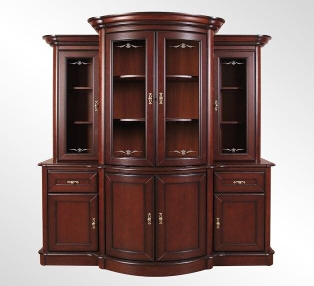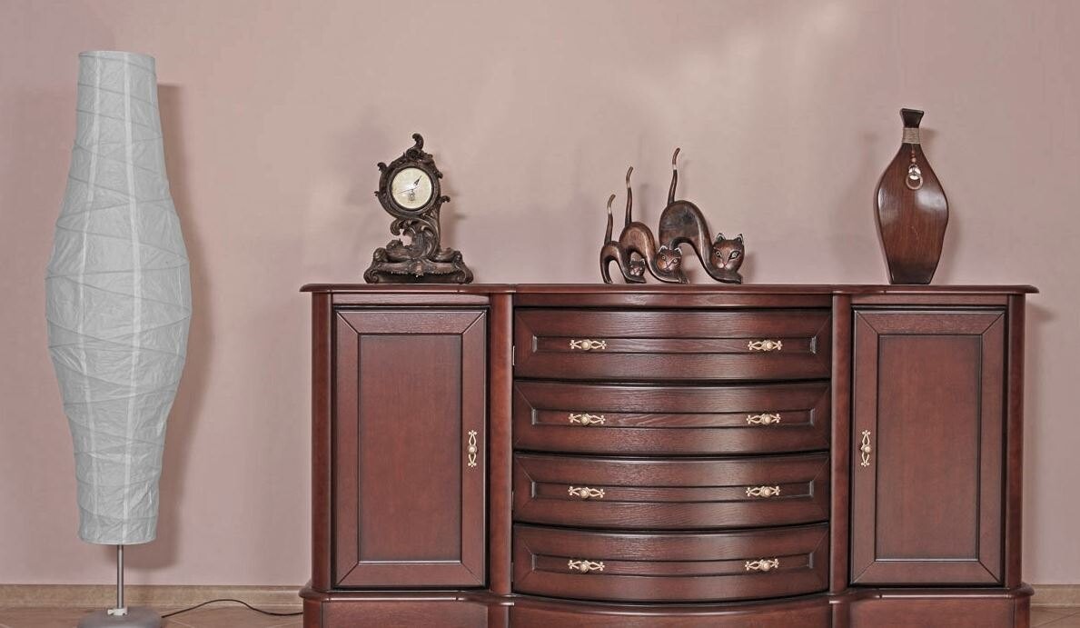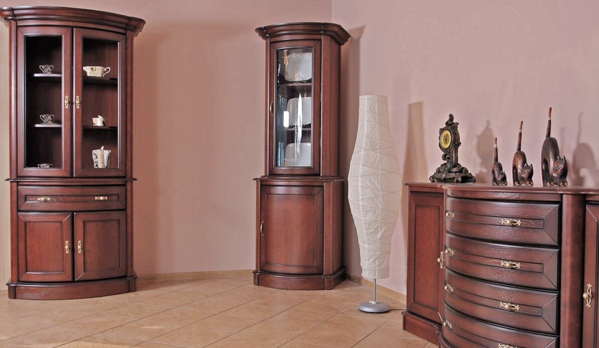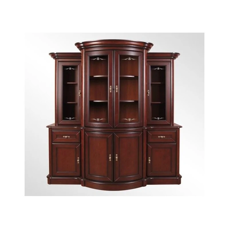 Kredens Nefryt to mebel do salonu, gabinetu i biura, który wręcz oczaruje swoim charakterem i wysublimowanym wyglądem. To z pewnością propozycja dla wszystkich, którzy kochają naprawdę luksusowe, drewniane meble z duszą. Ciemne kolory dodają gustowności i przede wszystkim są niezwykle charakterne. Lekki połysk odżywia i wyróżnia całą formę. Sylwetka tego kredensu jest wyjątkowa. Lekko zaokrąglona, wypukła, jest mistrzowskim i kreatywnym zabiegiem meblarskim. Spójrzmy na rzeźbione fronty, które podwyższają standard całego mebla. Obok wysublimowanych, bogato zdobionych uchwytów również nie przejdziemy obojętnie. Klasa i styl. Masywne, drewniane kredensy zachwycają. Ale kredens Nefryt to coś wyjątkowego. W zależności od tego, gdzie go postawimy, możemy zagospodarować jego powierzchnię, jak chcemy. Witryna może służyć jako barek na nasze wystawne, pamiątkowe trunki. To idealne miejsce na pamiątki rodzinne i elementy dekoracyjne. Kiedy szukamy kredensu do biura, niech dolna część Nefryta będzie przestrzenią na dokumenty, a witryna wyróżni nasze osiągnięcia, dyplomy i nagrody.