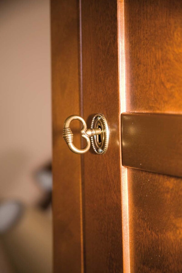 Fronty, cokoły, listwy i elementy konstrukcyjne- lite drewno; blaty oraz boki- naturalna okleina drewniana.