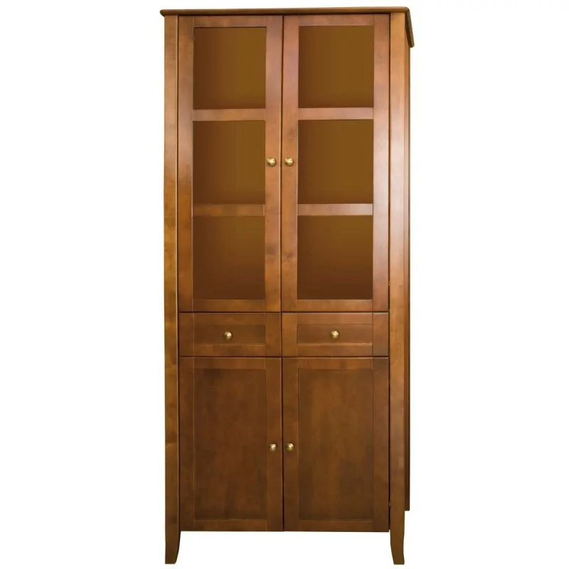 Witryna Amelia 4D2S to elegancki mebel wykonany z drewna brzozowego, idealny do salonu lub jadalni. Wyposażona w cztery drzwi i dwie szuflady, witryna oferuje dużo miejsca na przechowywanie i eksponowanie przedmiotów. Szklane drzwi umożliwiają prezentację dekoracji, zastawy stołowej czy książek, a szuflady doskonale nadają się na drobne akcesoria. Klasyczny design witryny z delikatnymi zdobieniami dodaje wnętrzu elegancji i klasy.