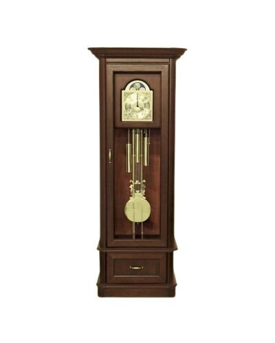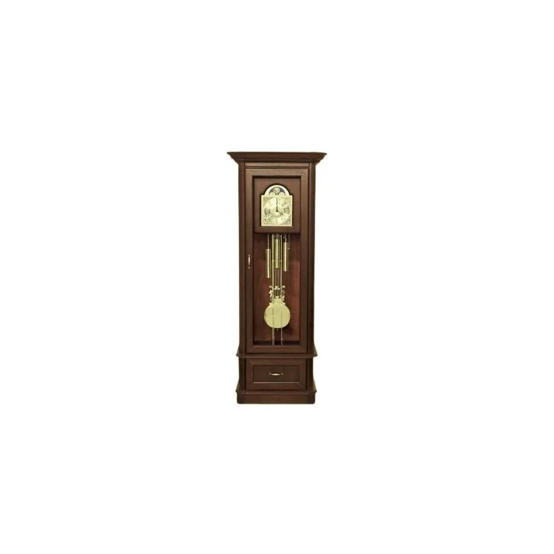 Zegar mechaniczny Szafir 1D1S to elegancki element wyposażenia wnętrza, wykonany z płyty fornirowanej. Dostępny w czterech kolorach wybarwienia: Brunat patyna, Czereśnia patyna, Koniak patyna, Rustikal patyna. Zegar ma wymiary: szerokość 79 cm, głębokość 50 cm, wysokość 202 cm. Jego klasyczny design doskonale komponuje się z innymi meblami z kolekcji Szafir, umożliwiając stworzenie spójnej aranżacji wnętrza. Kolekcja Szafir oferuje również komody, biurka, witryny i inne elementy, które można skompletować według własnych potrzeb.