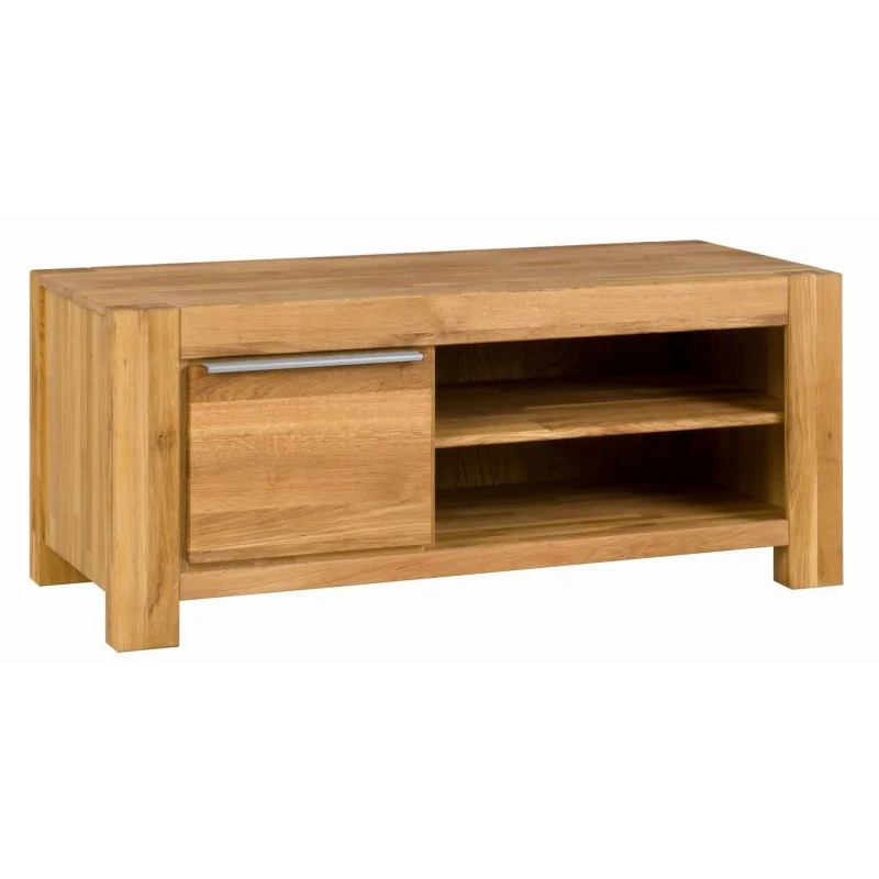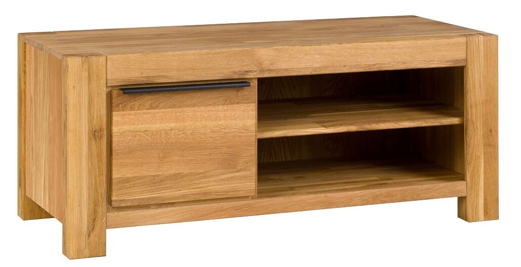 Szafka RTV Tina to solidny mebel z litego drewna dębowego, który zachwyca naturalnym urokiem i starannym wykonaniem. Prosty, ale elegancki design sprawia, że idealnie wpisuje się w nowoczesne i klasyczne wnętrza. Gruba, masywna konstrukcja zapewnia trwałość i stabilność, a starannie oszlifowane powierzchnie podkreślają ciepły, naturalny charakter drewna. Wysokiej jakości uchwyt w kontrastującym kolorze dodaje całości nowoczesnego akcentu, podkreślając funkcjonalność i estetykę.