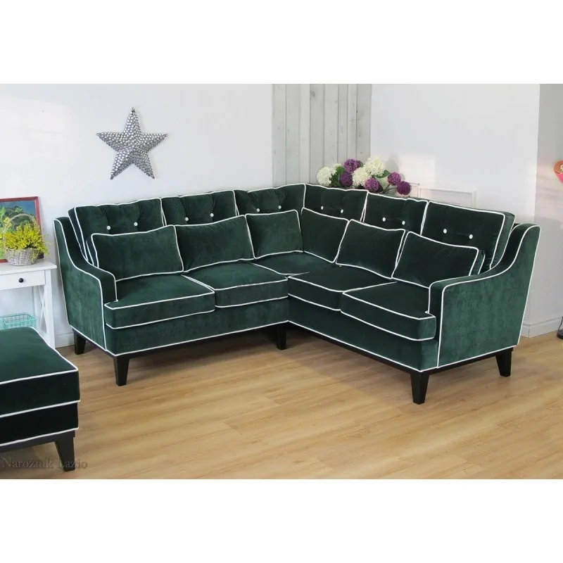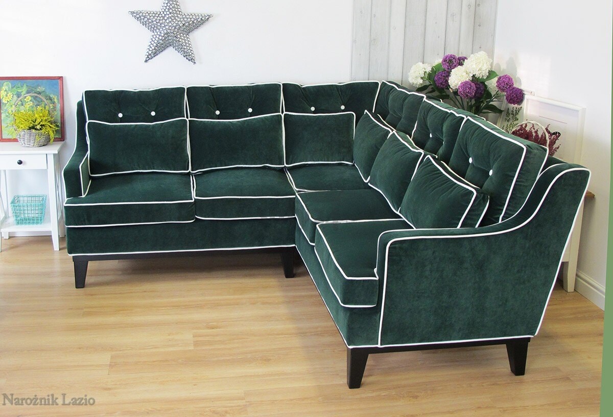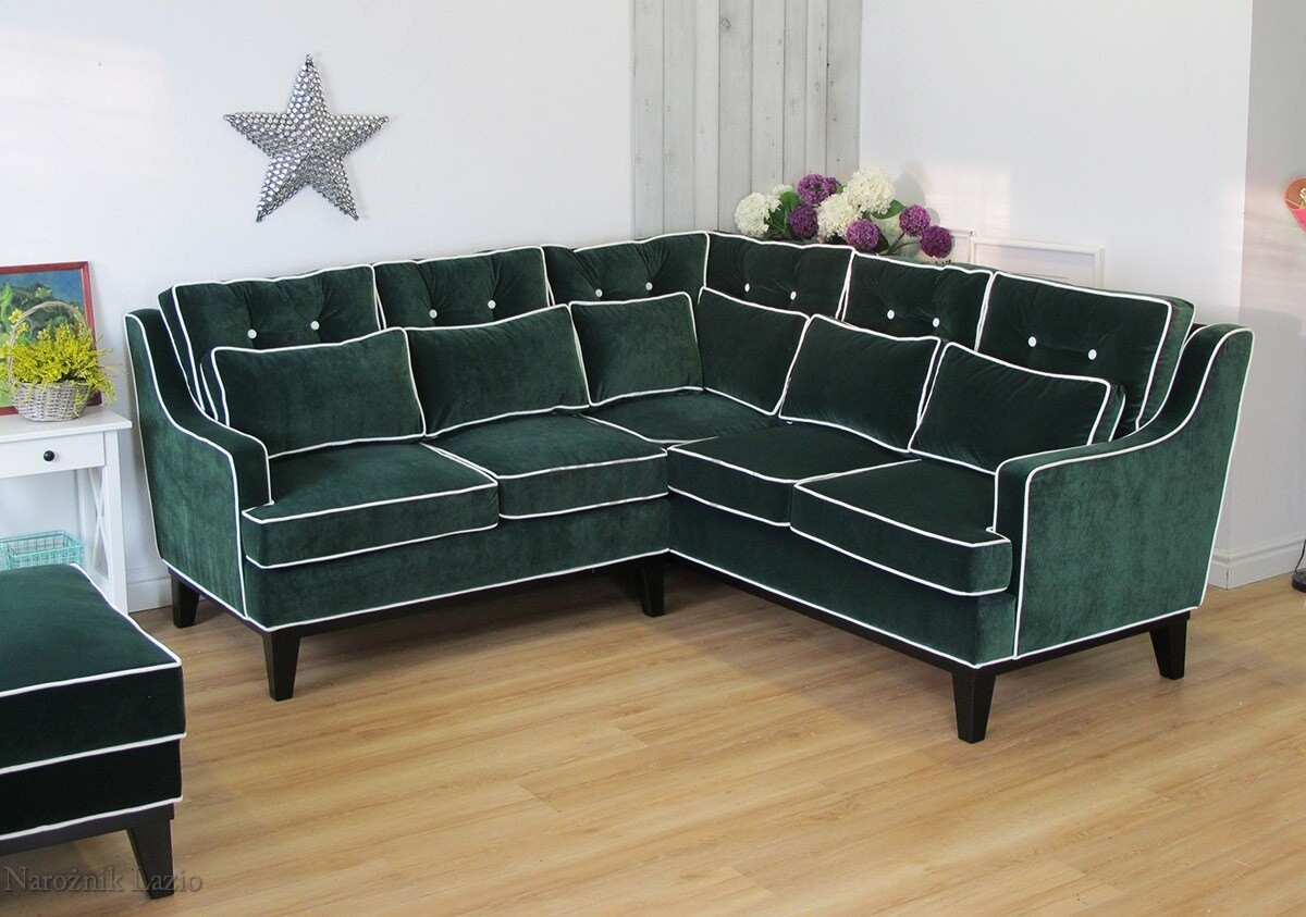Lazio to narożnik o nietuzinkowej urodzie. Sprawdzi się, szczególnie jeśli lubimy minione lata, a także pasjonujemy się historią lub meblami, które ją mają. Nadzwyczajny, ponieważ ma swój klimat, a każdy, kto na nim usiądzie, zatraci się w komforcie. Dokładne przeszycia, pikowania z guzikami – wszystko to sprawia, że wiemy, że mamy do czynienia z nieszablonowym meblem, który z pewnością ma coś nam dobrego do przekazania. Kiedy urządzamy nasze wnętrze i chcemy przekazać swoje upodobania, a także nasz styl, to dobry wybór. Lazio stoi na nogach, przez co wydaje się niezwykle lekki. Narożna forma gwarantuje bliski kontakt z rozmówcami podczas przyjęć, a także łatwiejszy dla każdego dostęp do stolika. Niezależnie od metrażu salonu, narożnik ten będzie prezentował się tak samo gustownie zarówno w mniejszych, jak i większych strefach wypoczynku. Pasuje do większości stylów aranżacyjnych, ale najpiękniej będzie prezentował się wśród stylu ludwikowskiego i retro. Wszędzie tam, gdzie domownicy czują wielką potrzebę podróży w głąb aranżacyjnych rozwiązań.