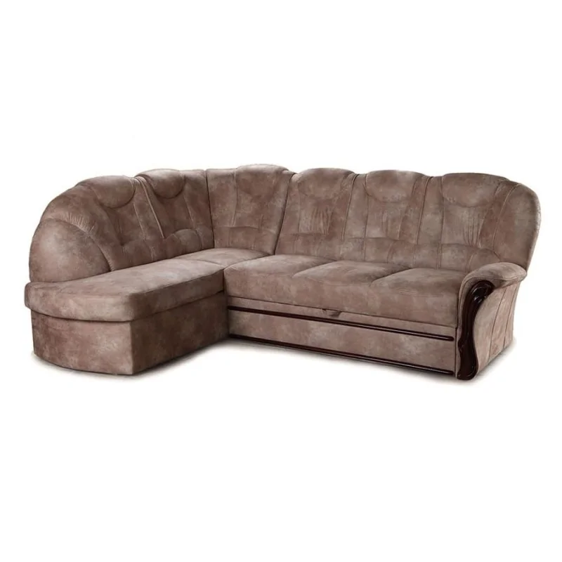 Kiedy mamy już dosyć klasycznych narożników o monotonnych kształtach, zwróćmy uwagę na Regan. Regan to projektancki majstersztyk. Połączenie kreatywności i śmiałego designu. Trafi w gusta ceniących sobie niewymuszone piękno i oryginalność. Jedna strona zakończona podłokietnikiem, druga śmiałym zmniejszeniem wysokości oparcia. Śmiałe przeszycia na oparciu są widoczne i ozdobne. Wypukła część wezgłowia prezentuje się nieszablonowo. Drewniane elementy podkreślają wystawny charakter mebla i dodają do niego jeszcze więcej wykwintności. Warto wspomnieć, że możemy wybrać tkaninę obicia i dopasować np. kolorystyczne. Narożnik o takim kształcie i takich wymiarach jest idealny, kiedy lubimy odpocząć w pozycji półleżącej. Przejdźmy teraz do korzyści pod względem komfortu i zdrowia. Spędzanie czasu na takim meblu wypoczynkowy może być długie i naprawdę przyjemne. Wszystko dzięki sprężynom falistym i piance wysokoelastycznej. Takie połączenie przekłada się na wyważoną miękkość i elastyczność. Na pewno odczujemy różnice i zakochamy się w tym wygodnym narożniku. Dzięki niemu nasz salon będzie użyteczny i gotowy na przenocowanie gości. Wszystko za sprawą funkcji spania.