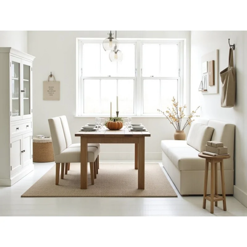 Wymiary ławki to wysokość siedziska 43 cm, całkowita szerokość 120 cm oraz wysokość 85 cm, jednak istnieje pełna możliwość zmiany tych parametrów w zależności od potrzeb. Ławka świetnie współgra z dopasowanym stołem oraz krzesłami, które można zamówić w zestawie, tworząc spójną aranżację jadalni lub kuchni. Doskonałe wykonanie, możliwość personalizacji i szeroki wybór materiałów tapicerskich czynią z tego produktu wyjątkową propozycję dla każdego, kto ceni sobie komfort i estetykę.