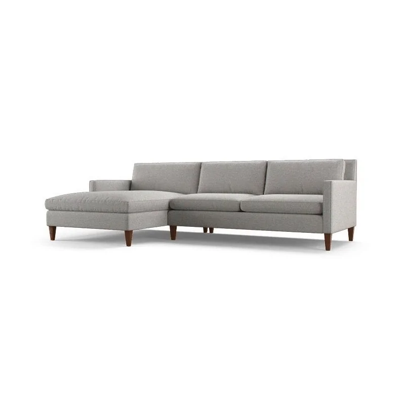 Prezentowany model opiera się na drewnianych nóżkach i solidnej konstrukcji wykonanej z drewna oraz płyty. To dzięki temu mebel o dużych gabarytach także może wyglądać tak lekko oraz wprowadzać dynamizm do Twojego salonu. Wygody dodają miękkie poduchy pełniące funkcję oparcia, podłokietniki oraz siedzisko, w którym zastosowano sprężyny i wysokogatunkową piankę tapicerską.  Charakter narożnika dopasowuje się do wnętrza Twojego domu, ponieważ sam decydujesz, jakim materiałem tapicerskim obić mebel, a nawet, na jaki kolor wybarwić jego nóżki.