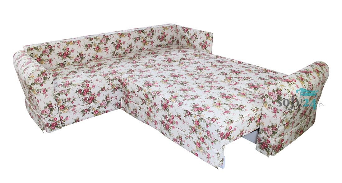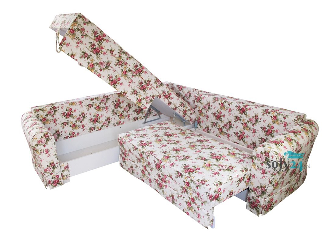 Narożnik w kwiaty Vera to doskonały mebel do mieszkań w zbiorowym budownictwie oraz do domów jednorodzinnych o niewielkiej powierzchni mieszkalnej. Mebel nie zlicza się do małych, bowiem jego szerokość przekracza parametry tradycyjnych kanap tego rodzaju, jednak po rozłożeniu zapewnia miejsce do spania dla dwóch dorosłych osób. Wykorzystany, jako element wyposażenia pokoju dziennego będzie zarówno komfortowym siedziskiem dla całej rodziny, jak i zastąpi łóżko wybranym domownikom. Jako mebel wypoczynkowy może też pełnić funkcję spania rezerwowego dla niespodziewanych gości. Narożnik w kwiaty Vera wyróżnia się zarówno przyjaznymi, miękkimi kształtami, jak i pięknym designem, którego zasługą jest kwiatowa tapicerka. Jasne tło tkaniny oraz różane bukieciki sprawiają, że pokój ożywa radością i przepełnia się delikatną kobiecą atmosferą. Kwieciste wzory to typowe dekoracje wnętrz w stylu rustykalnym, prowansalskim i shabby chic, dlatego kanapa doskonale odnajdzie się w każdej z tych stylizacji. Poza wyjątkowym wdziękiem kwiatowej kompozycji narożnik Vera jest też bardzo wygodny. Przestronne siedzisko skonstruowano na sprężynach kieszeniowych i wypełniono wysokoplastyczną pianką, dzięki czemu jest bardzo komfortowe. Oparcie złożone z małych, miękkich poduszek umożliwia dopasowanie do najwygodniejszej pozycji podczas relaksu.