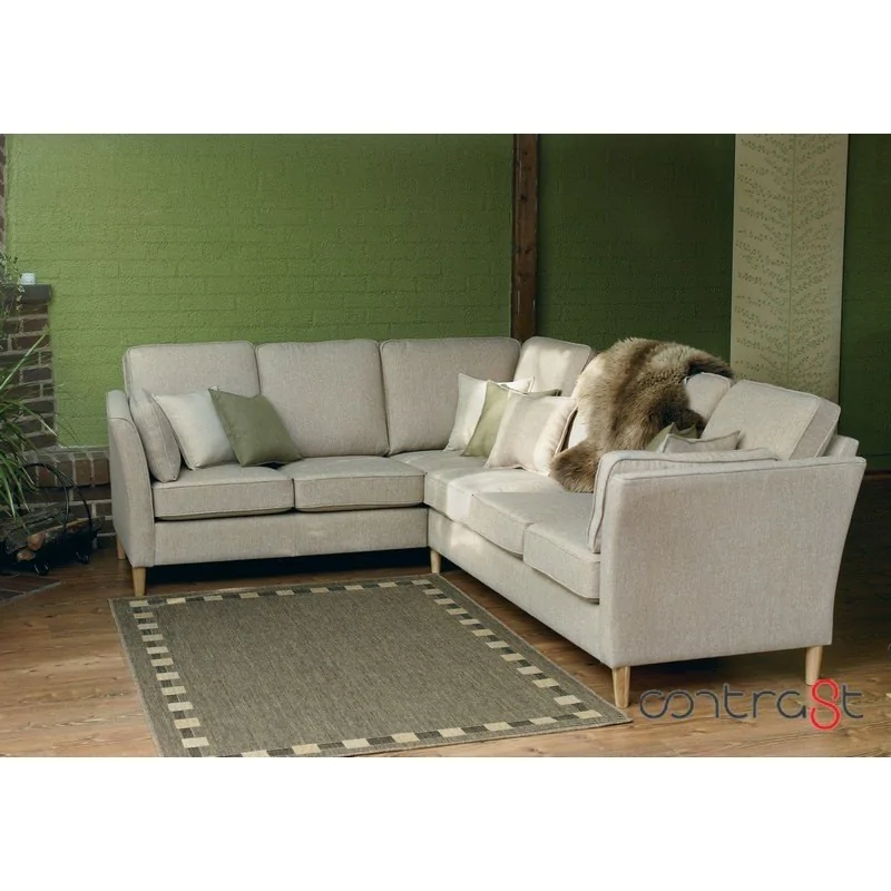 Piękny i bardzo elegancki narożnik w stylu skandynawskim Monsun to mebel w stylu skandynawskim, wyróżniający się zarówno charakterystyczną stonowaną formą, jak i jasną tapicerką typową dla stylizacji wnętrz północy. Bryła mebla przyciąga uwagę swoją regularnością, w której wyraźnie zaznacza się każda krawędź poduszki i każde, przypisane jednej osobie miejsce siedzące. Poduszki stanowią istotę tego modelu, bowiem wypełniają zarówno jego siedzisko, jak i oparcie. Każda z nich została wzbogacona o szeroki pas tkaniny na całym obwodzie, który pomaga zachować formę płaskiego klocka. Elegancji i dekoracyjności dodają im starannie wykończone krawędzie, z dodatkowym przeszyciem, tworzącym ozdobny wałeczek. Podstawowy zestaw został uzupełniony o kilka małych jaśków, które mogą stanowić harmonijny i kontrastowy element ozdobny. Narożnik w stylu skandynawskim Monsun jest meblem regularnym, o wyraźnym kształcie prostokąta, jednak posiada ramiona o różnej długości, dlatego może być wykonany w wersji lewej lub prawej. Takie rozwiązanie oraz opcja doboru jednej z 4 tysięcy wzorów tapicerki i kilku kolorów nóg pozwalają na stworzenie modelu, który idealnie dopasuje się do wielkości wnętrza oraz jego wystroju. Monsun to również mebel bardzo wygodny, co zawdzięcza sprężynom falistym oraz miękkiej, zwartej i sprężystej piance poliuretanowej.
