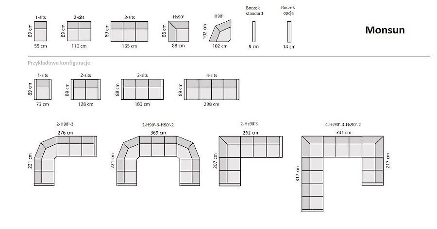 - Meble z kolekcji Monsun można dowolnie konfigurować, wg załączonych zdjęć modułów.