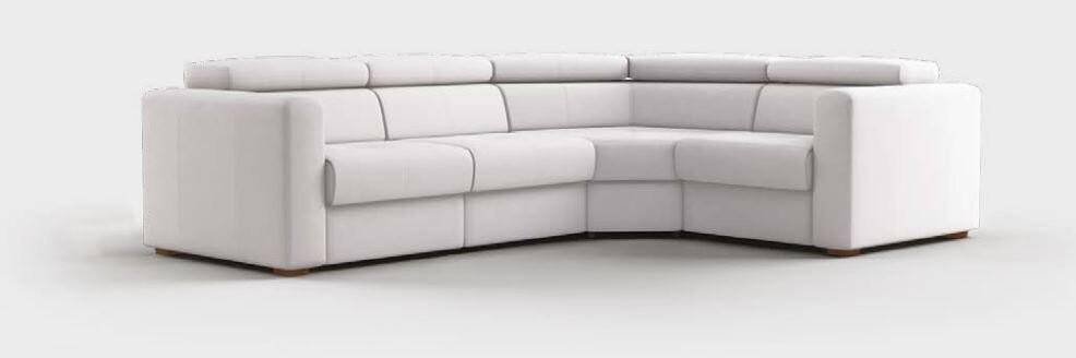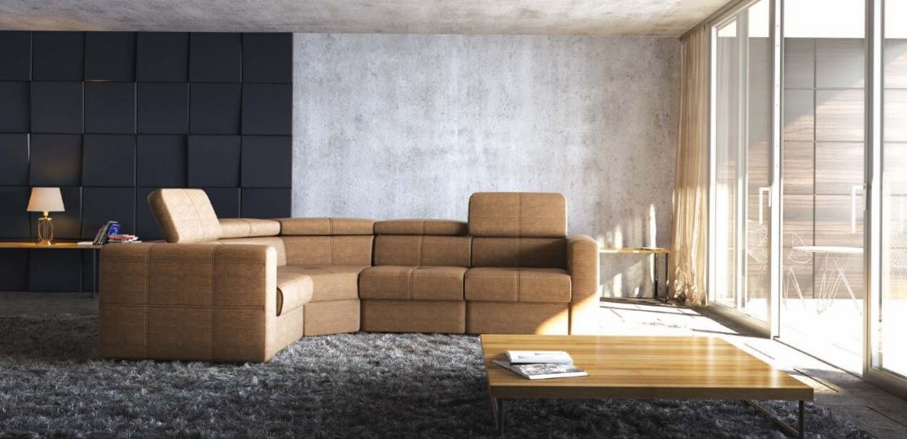 Modułowa kanapa narożna Napo to mebel o konstrukcji modułowej, stanowiący ciekawą propozycję zaaranżowaną do niezbyt dużych pomieszczeń. Dostępność kilku kształtów i wielkości modułów pozwala też na tworzenie większych zestawów, kanap, sof do dużych wnętrz, a także ich dopasowanie kolorystyczne do wybranych aranżacji. Cechą, która wyróżnia kompozycję, są regulowane zagłówki, z jednej strony poprawiające komfort wypoczynku, a z drugiej stanowiące rozwiązanie konstrukcyjne typowe dla współczesnych trendów meblarskich. Narożnik Napo zwraca uwagę niewielką różnicą pomiędzy długościami ramion a charakterystycznym wyokrągleniem konstrukcji ujętej w oparcia na całej swojej długości. Mebel w przybliżeniu przypomina wygiętą w łuk kanapę, bez dodatkowych elementów przedłużających siedzenia. Końce narożnika ograniczają wysokie, pikowane boki. Przeszycia zdobią też wszystkie poduszki siedziska, oparcia i zagłówki. Modułowa kanapa narożna Napo jest meblem w wyjątkowo przyjemnym, ciepłym stylu idealnym do przytulnych saloników, w zestawieniu z niewielkim stolikiem kawowym.