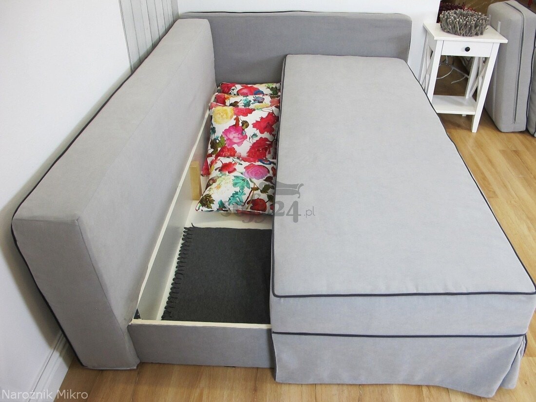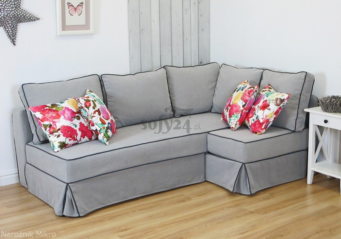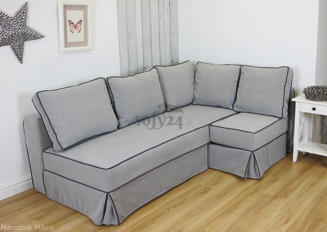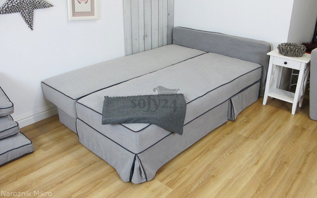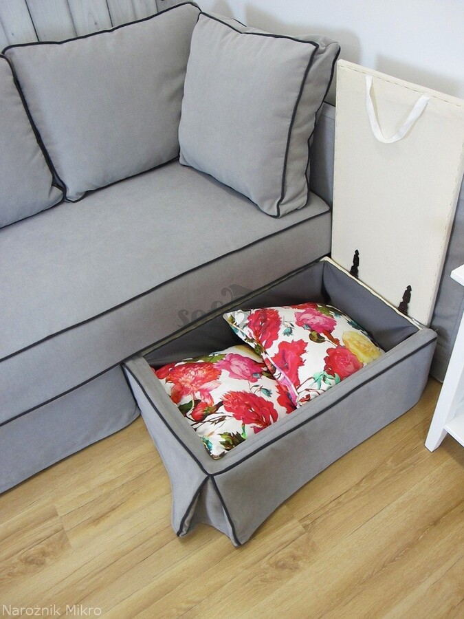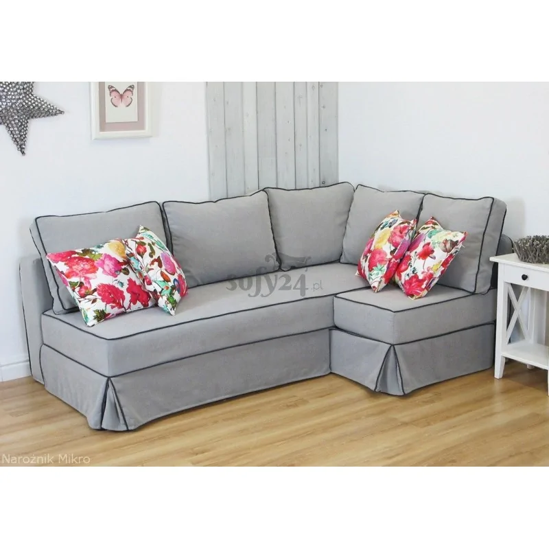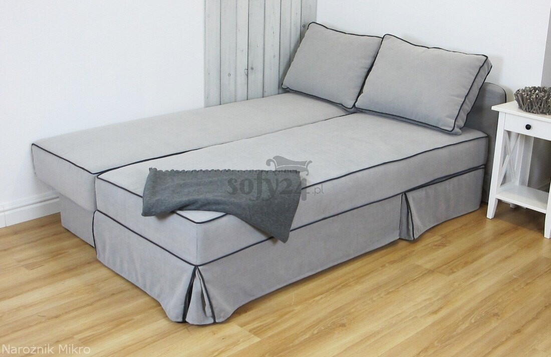 Narożnik z lamówką mikro to mebel prosty i elegancki, lecz nie banalny. Brak podłokietników nadaje mu nowoczesnego wyglądu, a kontrastowa lamówka podkreśla linie mebla, dzięki czemu wydaje się on bardziej graficzny. Miękkie poduszki oparcia nadają całości wygody i przytulnego wyglądu, a przez brak widocznych nóżek narożnik nabiera wizualnej solidności. Narożną formę cechuje ergonomia, a możliwość wykonania narożnika na wymiar sprawia, że zmieścisz go nawet do niewielkiego pomieszczenia. Niezwykłą funkcjonalność mebla determinuje też funkcja spania oraz aż dwa pojemniki na pościel. Rozwiązanie to, wsparte nieskomplikowanym sposobem rozkładania, sprawia, że łóżko narożnika Mikro idealnie nadaje się do codziennego użytkowania. To doskonały mebel do kawalerki czy pokoju dziennego, szczególnie w niewielkim mieszkaniu. Dzięki zdejmowanemu pokrowcowi łatwo utrzymasz go także w czystości.
