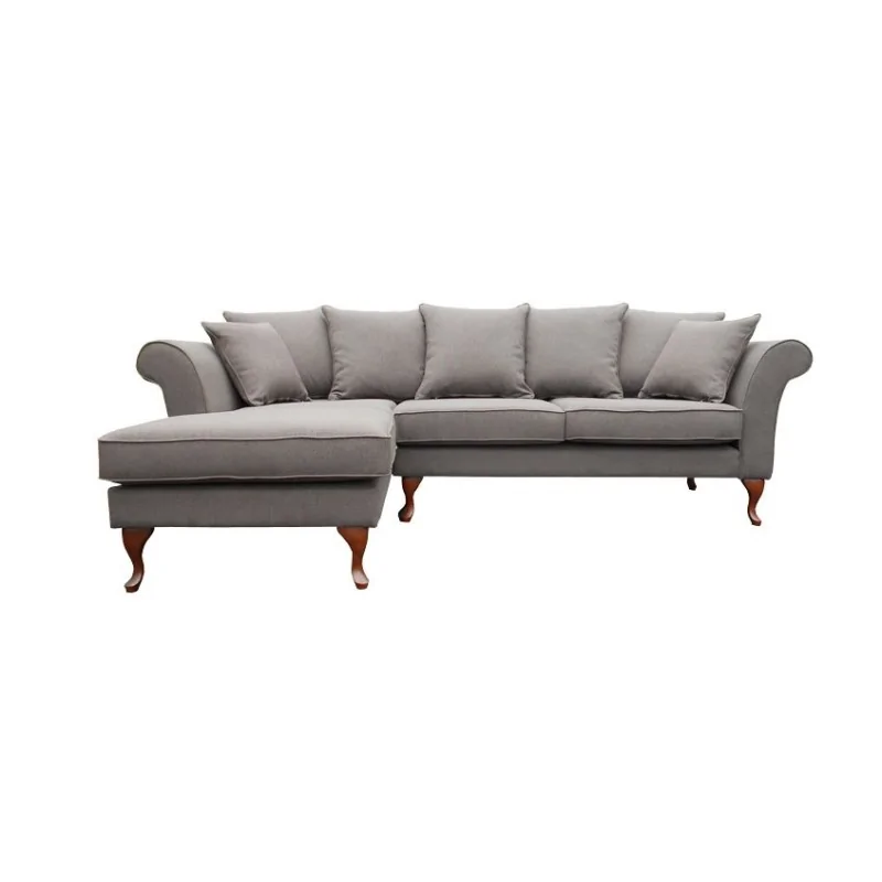 Styl ludwikowski to wyrazisty nurt inspirowany francuską modą salonową z ubiegłych epok. W prezentowanym narożniku jego wpływ widoczny jest przede wszystkim w drewnianych, wyprofilowanych nóżkach, miękkim i obszernym siedzisku oraz wysokogatunkowej tkaninie obiciowej. Połączenie tych elementów w zestawieniu z nowoczesnymi akcentami sprawiło, że powstał narożnik z ludwikowskimi nogami Bufalo, który jest nie tylko piękny, ale również niesamowicie funkcjonalny. Mebel składa się z kilku miejsc siedzących, przy czym jedno jest dodatkowo przedłużane. Taki bok doskonale sprawdzi się, jeżeli narożnik zechcesz umieścić w rogu pomieszczenia, bądź wizualnie oddzielić część wypoczynkową od jadalnianej czy kuchennej. Gustowny i obszerny mebel zachwyca jednocześnie swoją lekkością oraz miękkością siedziska czy dołączonych do zestawu poduch. W tym projekcie próżno szukać kompromisów. Oprócz maksymalnej wygody i wysokiej estetyki wykonania, narożnik charakteryzuje się wytrzymałością, jego bazę stanowi bowiem konstrukcja z drewna litego i płyty. Ludwikowski styl, jaki stał się inspiracją do powstania mebla, sprawdzi się w każdym wnętrzu, ponieważ dajemy Ci możliwości indywidualnego wyboru rodzaju i koloru materiału obiciowego oraz rodzaju i koloru nóżek.