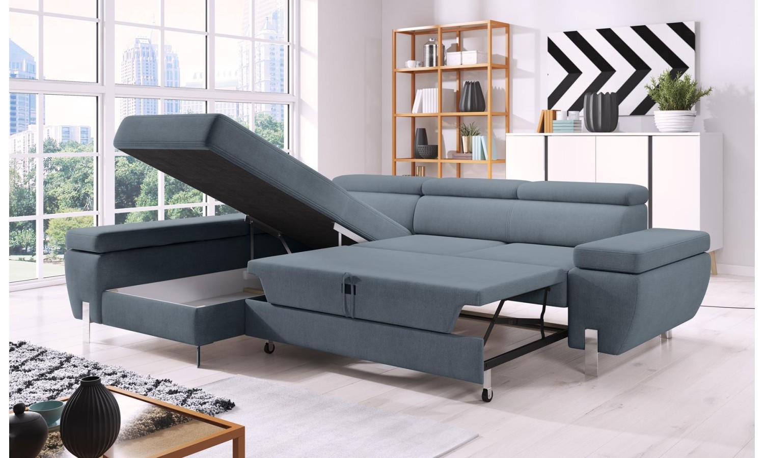 - Narożnik z funkcją spania i pojemnikiem na pościel