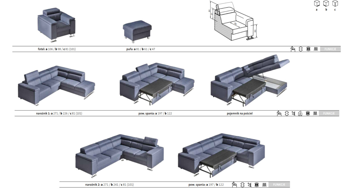 - Narożnik z funkcją spania, bez pojemnika