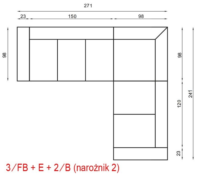 - Wymiary całkowite: 271 x 241 cm