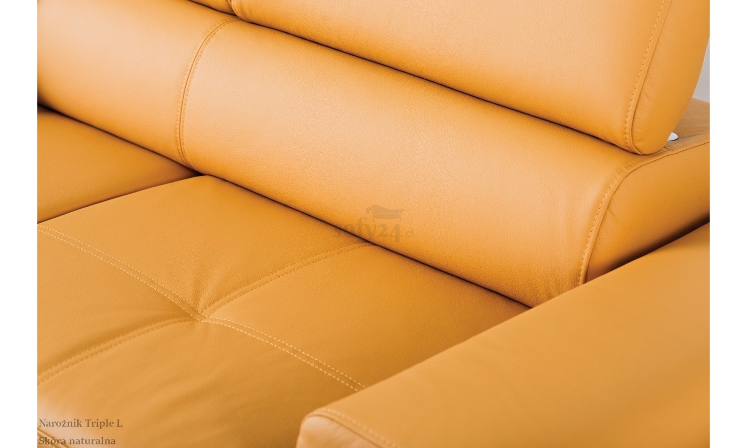 Dla marzycieli, którzy uwielbiają spędzać czas, spoglądając na sufit i myśleć o przyjemnych rzeczach. Dla miłośników luksusowych bardzo funkcjonalnych rozwiązań. Triple został stworzony z myślą o zaspokojeniu potrzeb domowników wymagających, którzy ponad wszystko stawiają sobie wygodę. Ma funkcję spania, a także ma pojemnik na pościel. Pomoże więc w przyjmowaniu gości i zapewnieniu im należnego komfortu. Wszystko to mieści się w rozbudowanej, lecz przyjemnej w odbiorze formie. Przyjrzyjmy się mu bliżej. Oparcia dumnie prezentują dodatkowe poduchy, które możemy w każdej chwili odchylić, aby uzyskać zdrową pozycję i pozwolić odpocząć szyi. Podłokietniki zostały zmienione również na gustowne poduchy, więc idealnie możemy ustawić je pod nasze potrzeby. Wielowarstwowy narożnik tworzy jedną, przemyślaną i estetyczną formę. Luksus, którego doda do salonu ten niezwykły i nieszablonowy mebel wypoczynkowy, jest gwarantowany. Tak samo gwarancją jest odpoczynek domowników i dostosowywanie się do ich pragnień. To innowacyjna technologia połączona z gustownością.