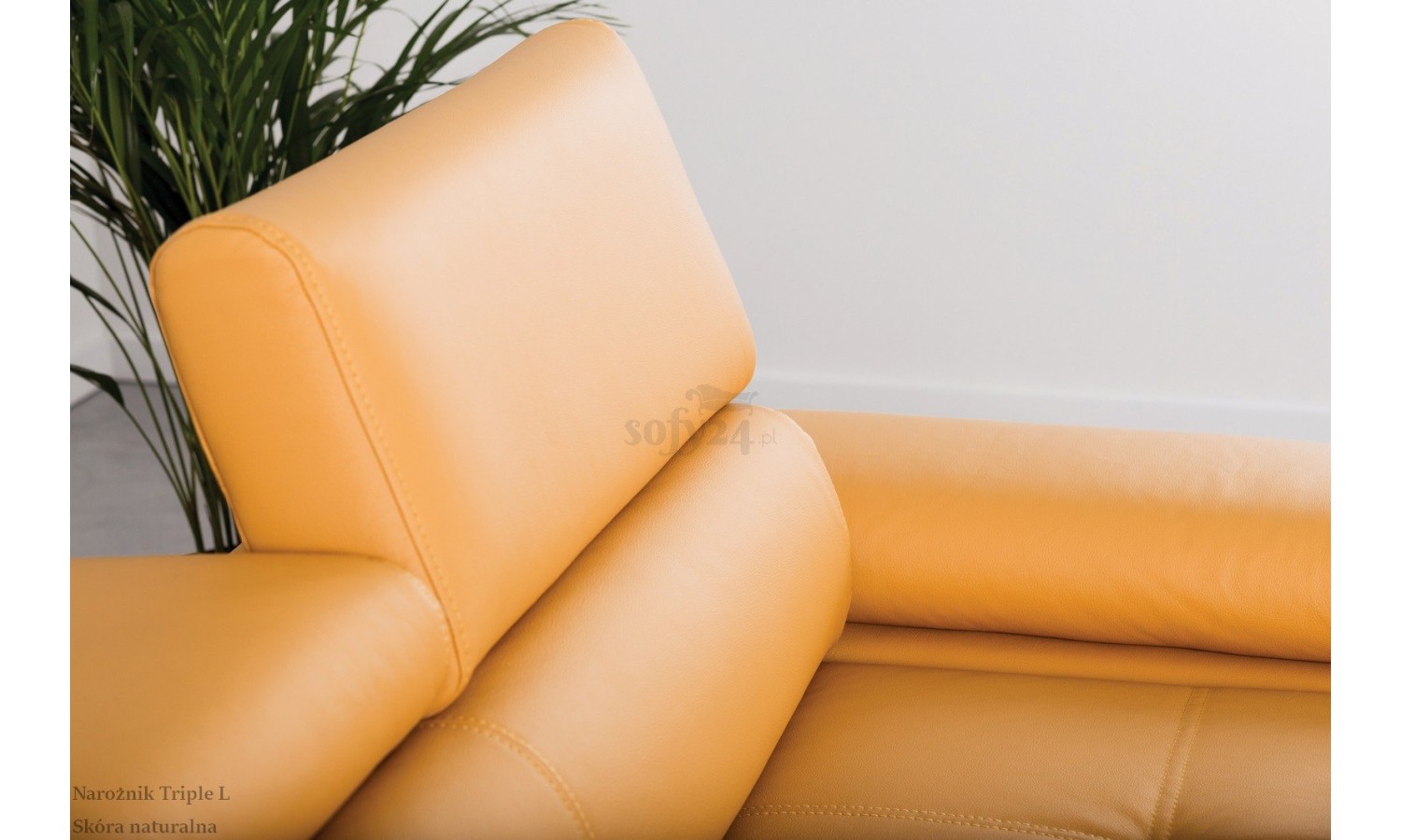 Narożnik Triple L 262 x 223 cm z funkcją spania i pojemnikiem w skórze naturalnej