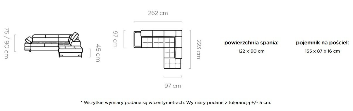 - Narożnik możliwy do wykonania w wersji prawej i lewej.