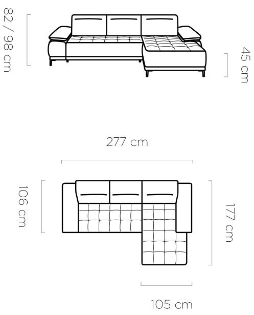 - Narożnik możliwy do wykonania w wersji prawej i lewej.