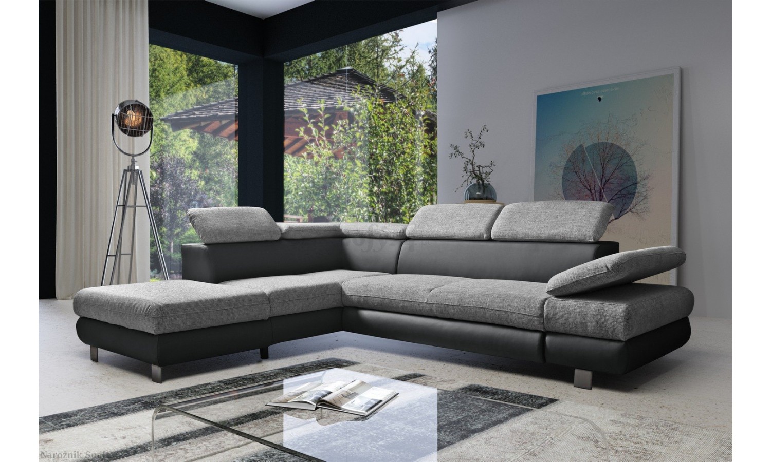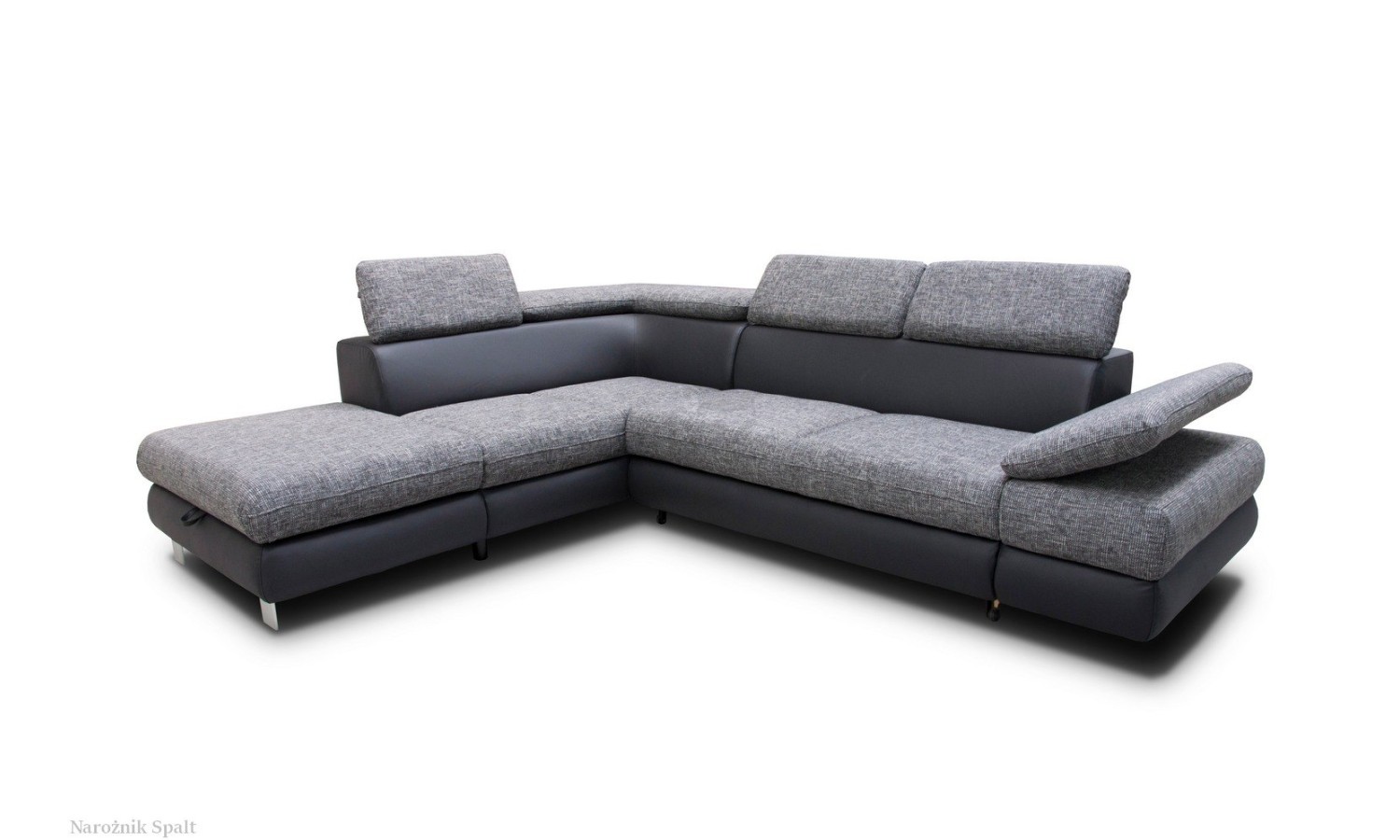 Nowoczesny narożnik Spalt z wieloma funkcjami dostarczającymi maksimum wygody już na zawsze stanie się ulubionym meblem wypoczynkowym. Jego innowacyjna forma, która spełnia oczekiwania najbardziej wymagających i nieszablonowy wygląd spełniający marzenie o designerskim salonie, oczaruje i zachwyci. Spójrzmy na jego rozbudowaną, ale nadal elegancką estetykę. Nowoczesne nogi dodają charakteru, ale i ułatwiają utrzymanie porządku. Ciemna podstawa, która wspiera siedzisko i idealnie współgra z jego odmiennym kolorem. Siedzisko delikatne przeszyte, subtelnie wyznacza miejsca do siedzenia. Znów mamy oparcie zaczynające się ciemnym kolorem, które wspiera innowacyjne zagłówki. Zagłówki te każdy może regulować wedle własnych potrzeb, a same w sobie są designerskim elementem dekoracyjnym. Zaskoczymy swoich gości nieszablonowym wyglądem narożnika, ale czymś jeszcze. Może zostaną na dłużej, a rano zjemy wspólne śniadanie? Jednym ruchem zapewnimy im komfortowe miejsce do spania. Pościel? Znajduje się w pojemniku, którego nawet na pierwszy rzut oka