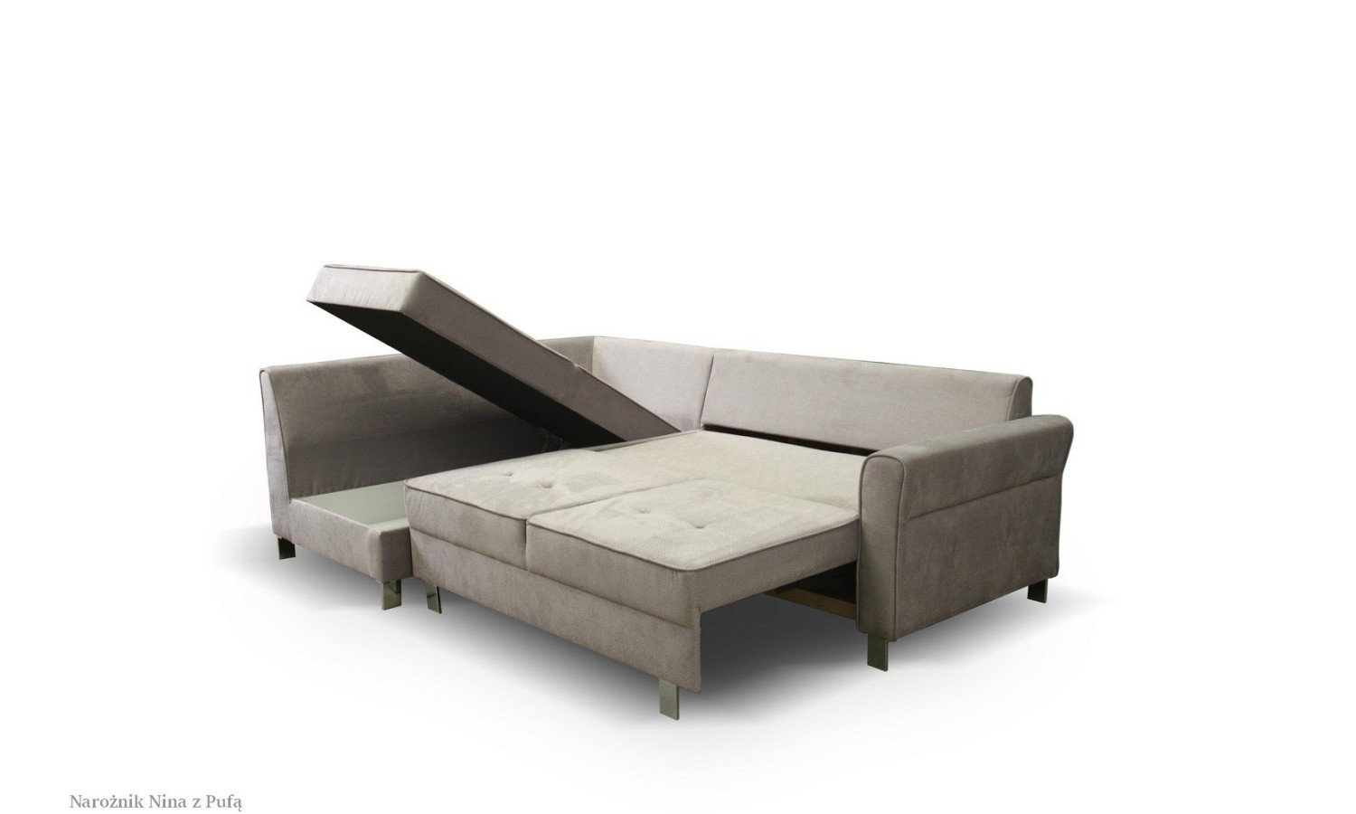 + Narożnik Nina z dostawianą pufą 259 x 171 / 250 cm z funkcją spania i pojemnikiem