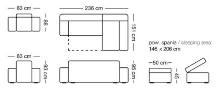 ∗ Powierzchnia funkcji spania : 146 x 206 cm