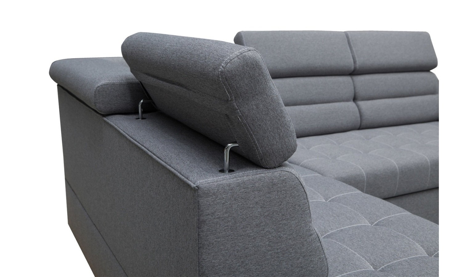 Niezależnie w jakim stylu chcemy urządzić nasz salon. Każdy z nas pragnie, aby był on przytulny i wygodny. Przytulny, aby po przekroczeniu progu, witał nas i zapraszał do odpoczynku. Wygodny, aby ten odpoczynek był wartościowy i dodawał energii. Z zamiarem odpowiadania na te potrzeby powstał nowoczesny narożnik Tami. Posiada on regulowane zagłówki, co jeszcze bardziej wzmocni komfort użytkowania. Jest na tyle duży, że będzie sprzyjał rodzinnym spotkaniom. Walory estetyczne dostrzeżemy w pięknych, lecz delikatnych przeszyciach na siedzisku oraz rozbudowanej sylwetce. Ta sylwetka skrywa funkcję spania, którą docenią szczególnie Ci, którzy lubią gościć bliskich na dłużej. Jakość przeplata się więc z funkcjonalnością, a wygoda łączy z oryginalnym designem. To narożnik idealny dla wszystkich, dla których cenne jest poczucie przytulności i nieobojętna estetyka.