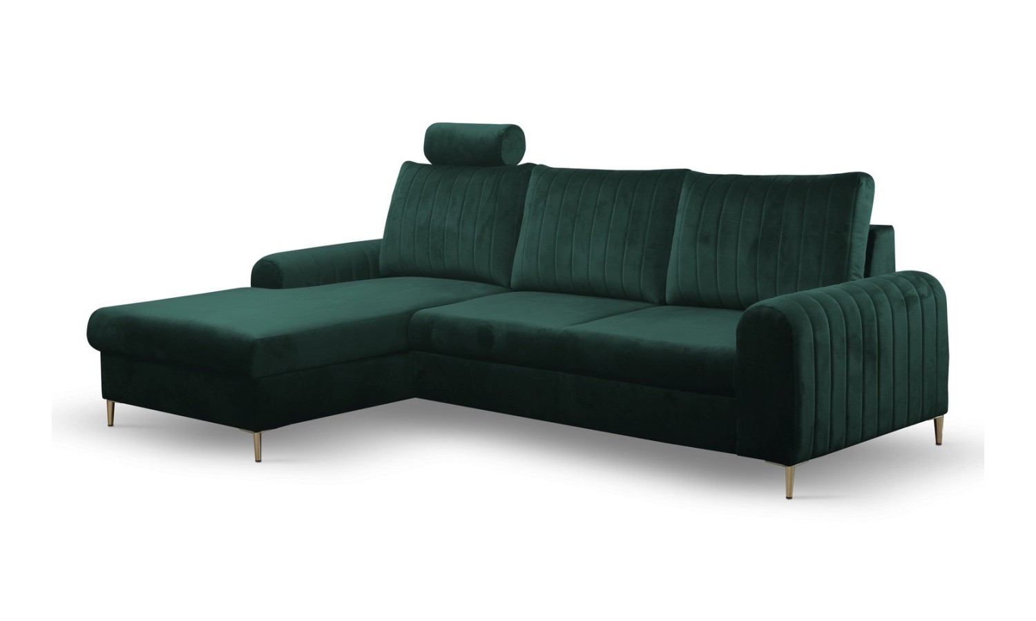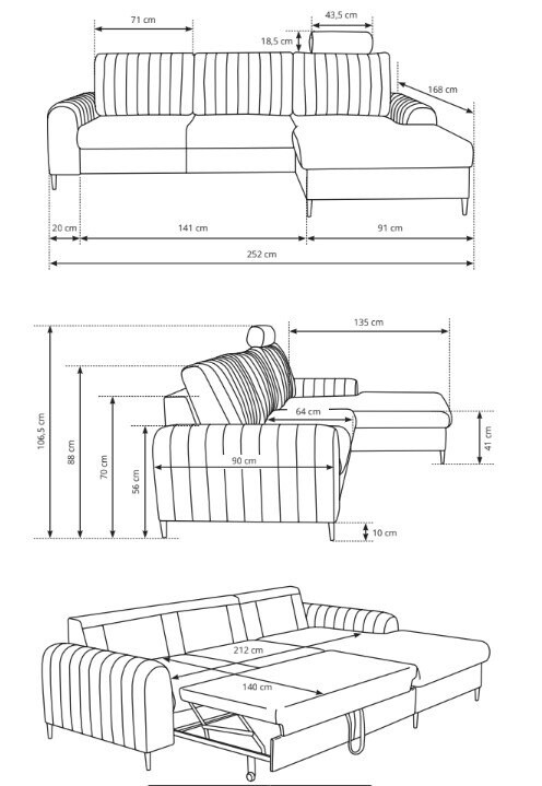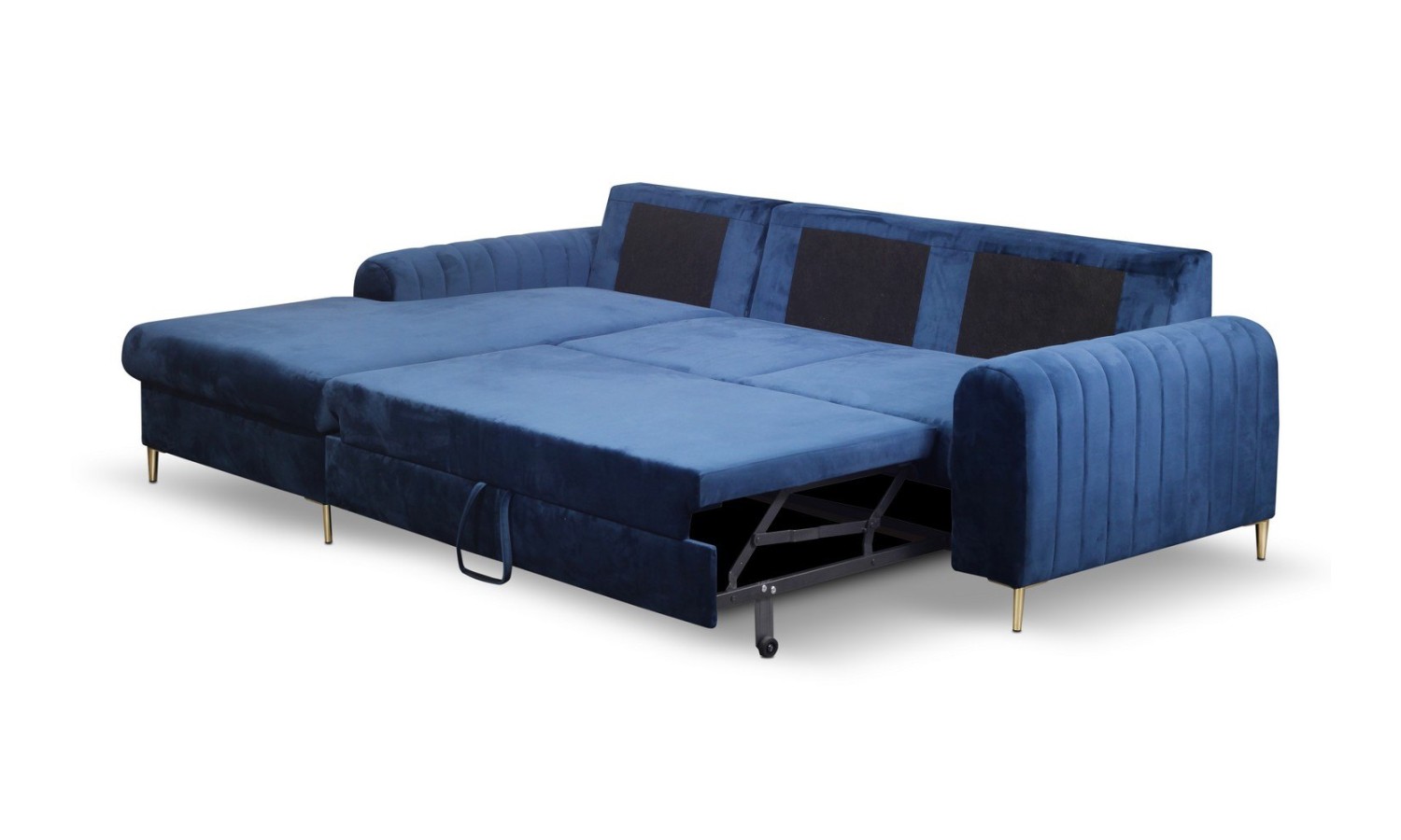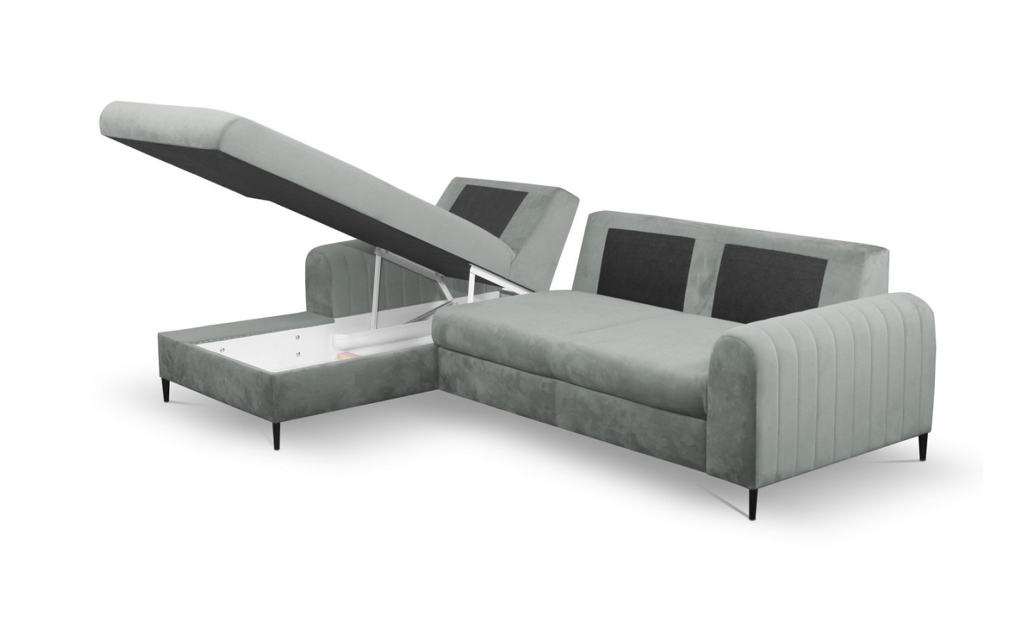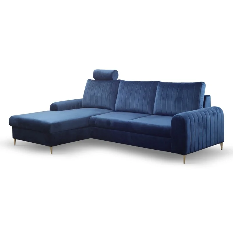 - Narożnik z funkcją spania (automat wspomagający rozkładanie) i pojemnikiem na pościel