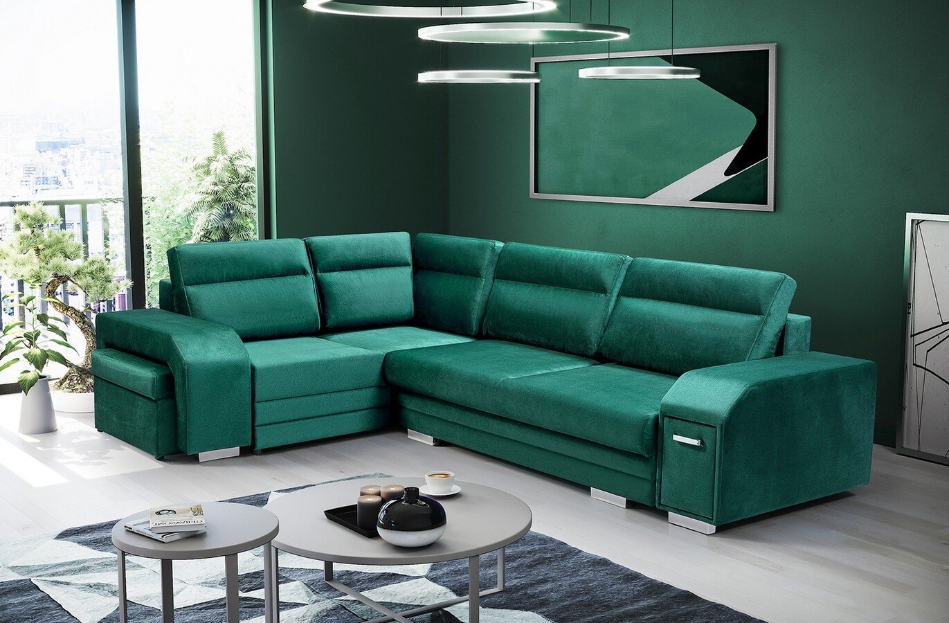 Funkcjonalny i jednocześnie przytulny salon to marzenie wielu domowników. Jako że mebel wypoczynkowy jest największą częścią salonu, to właśnie od niego oczekujemy spełnienia tych wszystkich marzeń. Narożnik Edward wydaje się idealnym rozwiązaniem, jeśli chodzi zarówno o doznania wzrokowe, jak i komfortowe. Duża bryła skrywa w sobie schowek. To miejsce na wszelkiego typu podręczne rzeczy. W boku narożnika jest schowana pufa, którą w zależności od okoliczności możemy wyciągnąć i albo sprawić dodatkowe miejsce do siedzenia, albo zrobić sobie podnóżek. To niecodzienne rozwiązanie, które okazuje się wręcz idealne. Dodatkowo ten stylowy mebel posiada funkcję spania. Cechą charakterystyczną Edwarda jest oczywiście nowoczesny design, który przejawia się w szerokich podłokietnikach i oparciu ozdobionym przeszyciami. Mamy ogromny wybór, jeśli chodzi o tkaninę tapicerską, więc możemy dopasować go kolorystycznie.