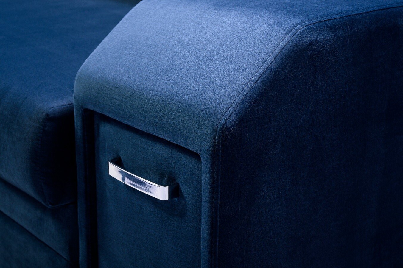 - Dodatkowy wysuwany schowek w podłokietniku oraz pufa w boku