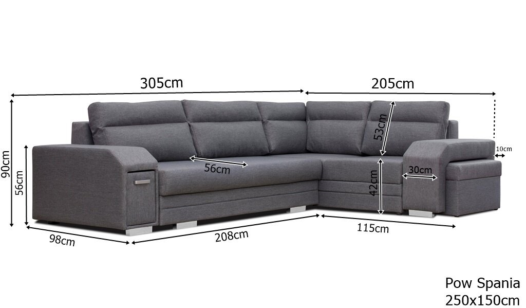 Narożnik Edward 305 x 205 cm z funkcją spania, 2 pojemniki, pojemnik w boku oraz pufa