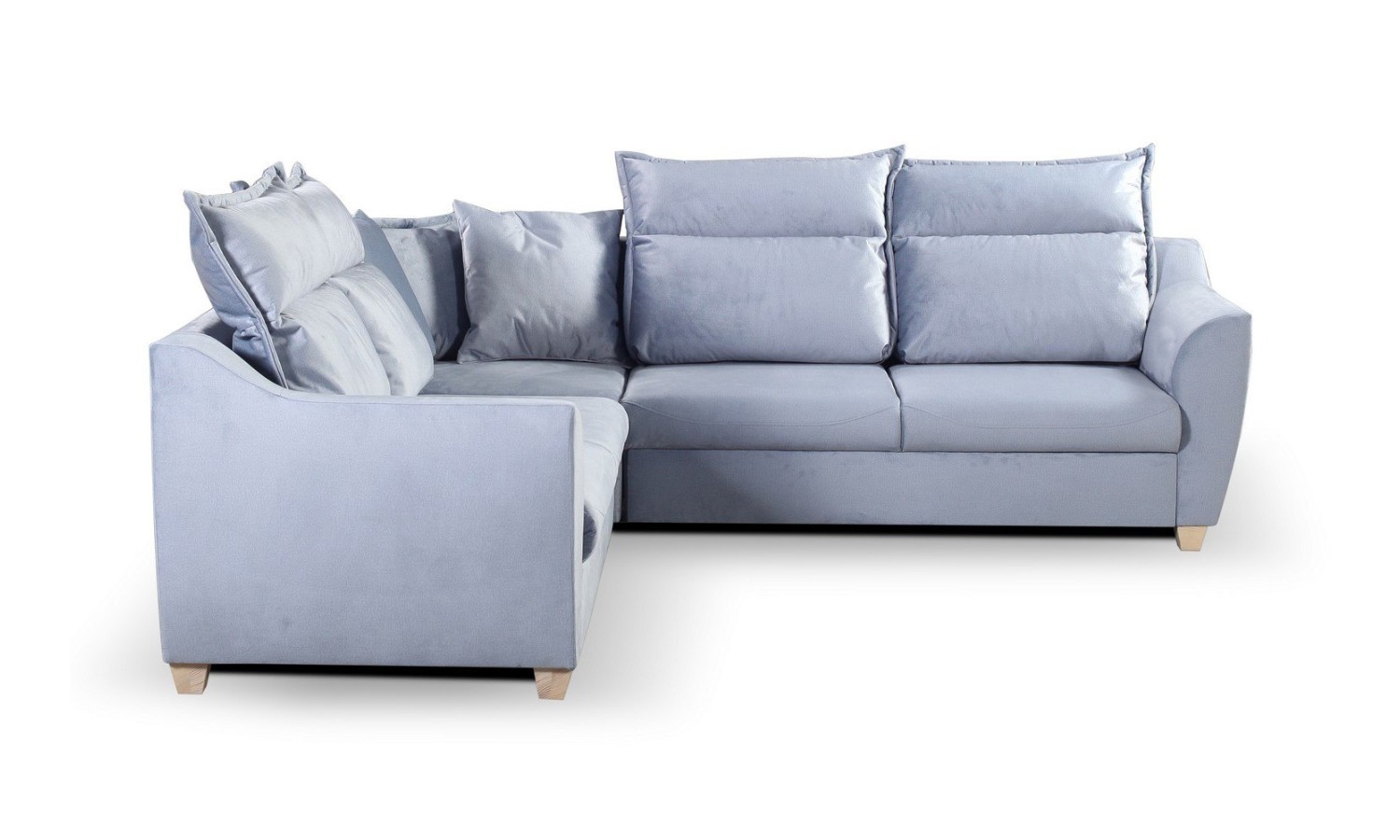 Narożnik Sili 245 x 245 cm z funkcją spania i pojemnikiem na pościel z pewnością zadowoli poszukiwaczy mebli zapewniających komfort i pięknie wyglądających. Mebel świetnie będzie się prezentował w przestronnych wnętrzach klasycznych, skandynawskich i nowoczesnych. Wyróżnia go elegancka, masywna bryła i spore wymiary. Uwagę przyciągają efektowne, duże pikowane pionowo poduchy, szerokie siedzisko, profilowane podłokietniki i kształtne nóżki.