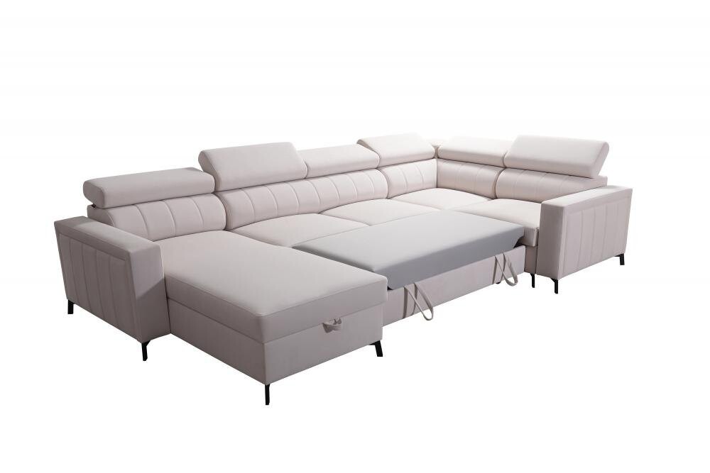 Jeśli poszukujesz efektownych mebli do eleganckiego, dużego salonu, z pewnością zainteresuje Cię narożnik Hestia V Maxi 183x351x198 cm. Model to przestronny i funkcjonalny mebel, który oferuje też sporą ilość miejsca do komfortowego odpoczynku. Z pewnością doskonale sprawdzi się podczas relaksu z rodziną oraz w trakcie przyjmowania gości. Narożnik jest bardzo nowoczesny, pięknie prezentują się pikowane oparcia z regulowanymi zagłówkami i eleganckie stopki.