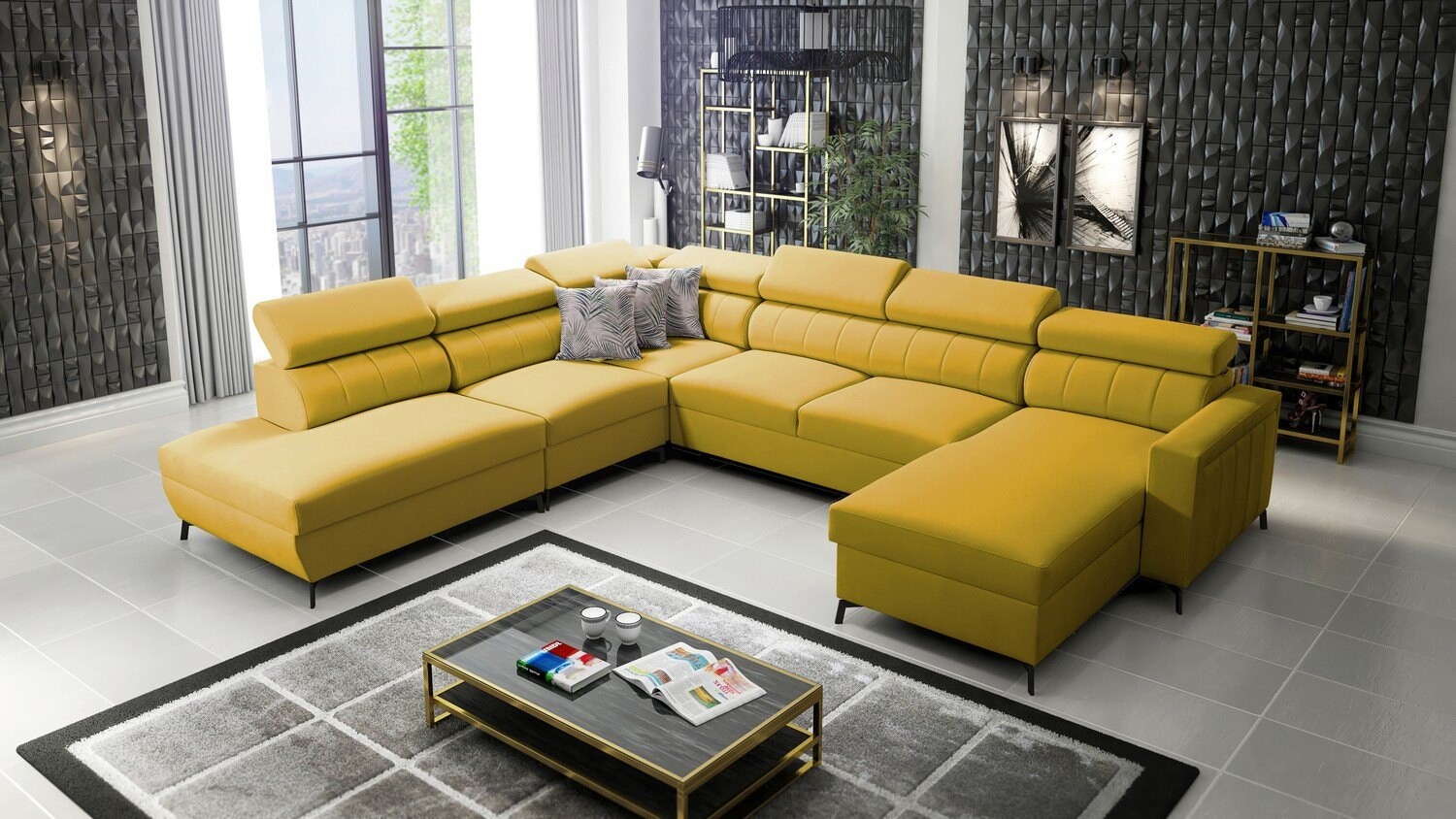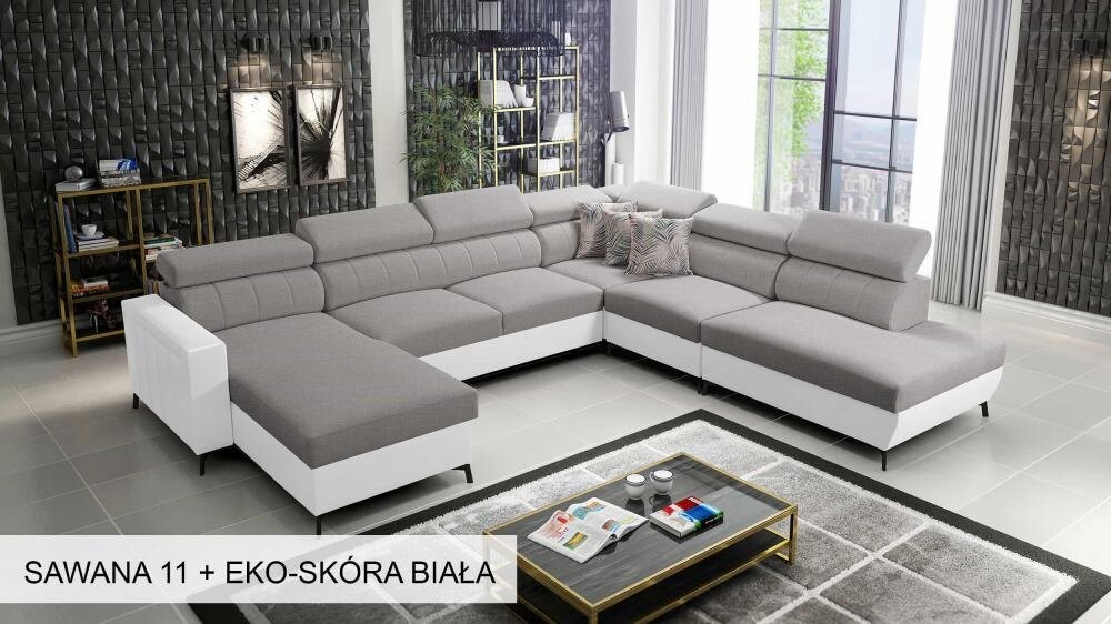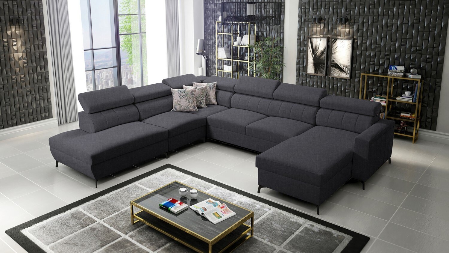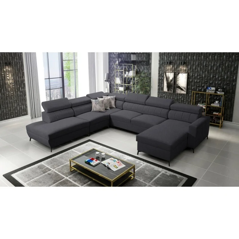 Narożnik Hestia IX 183x351x302 cm to połączenie niebanalnego designu z wysoką funkcjonalnością. Ten przestronny mebel pięknie będzie się prezentował w salonie. Narożnik posiada miękkie siedzisko oraz wygodne zagłówki z możliwością regulacji, idealnie dopasowujące się do kręgosłupa. Wygodę gwarantują także umieszczone w siedzisku sprężyny faliste i pianka o grubości 10 cm.
