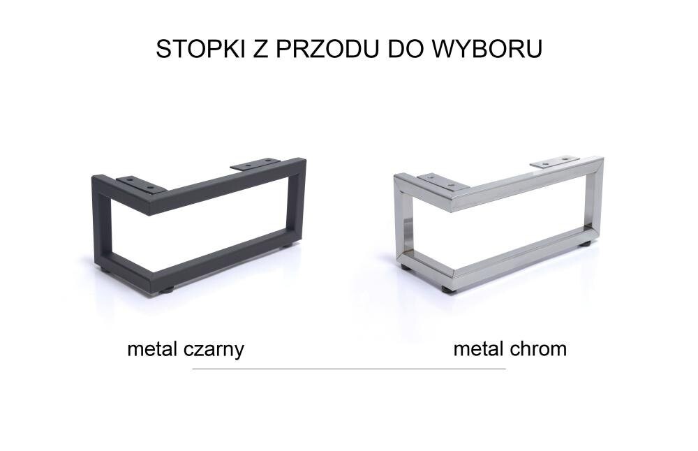 - Nóżki z przodu metalowe: chromowane lub czarne. Nóżki z tyłu: drewniane lub chromowane plastikowe (chromowane za dopłatą + 100 zł)