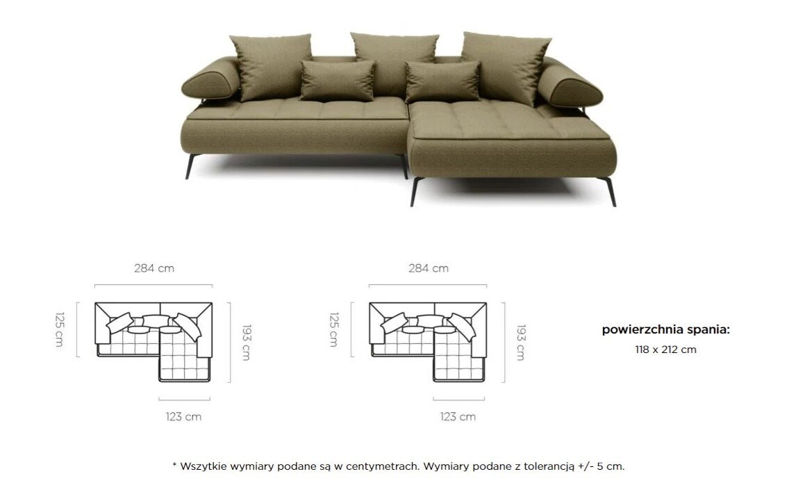 Narożnik Karin 284 x 193 cm - z funkcją spania + elektrycznie regulowana głębokość siedziska
