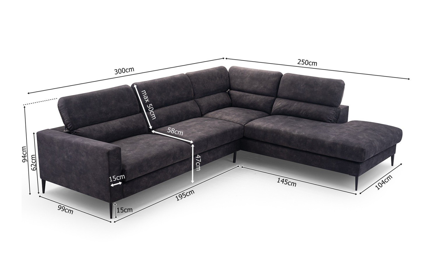 Wygodny narożnik Terso 300x250 cm - bez funkcji spania
