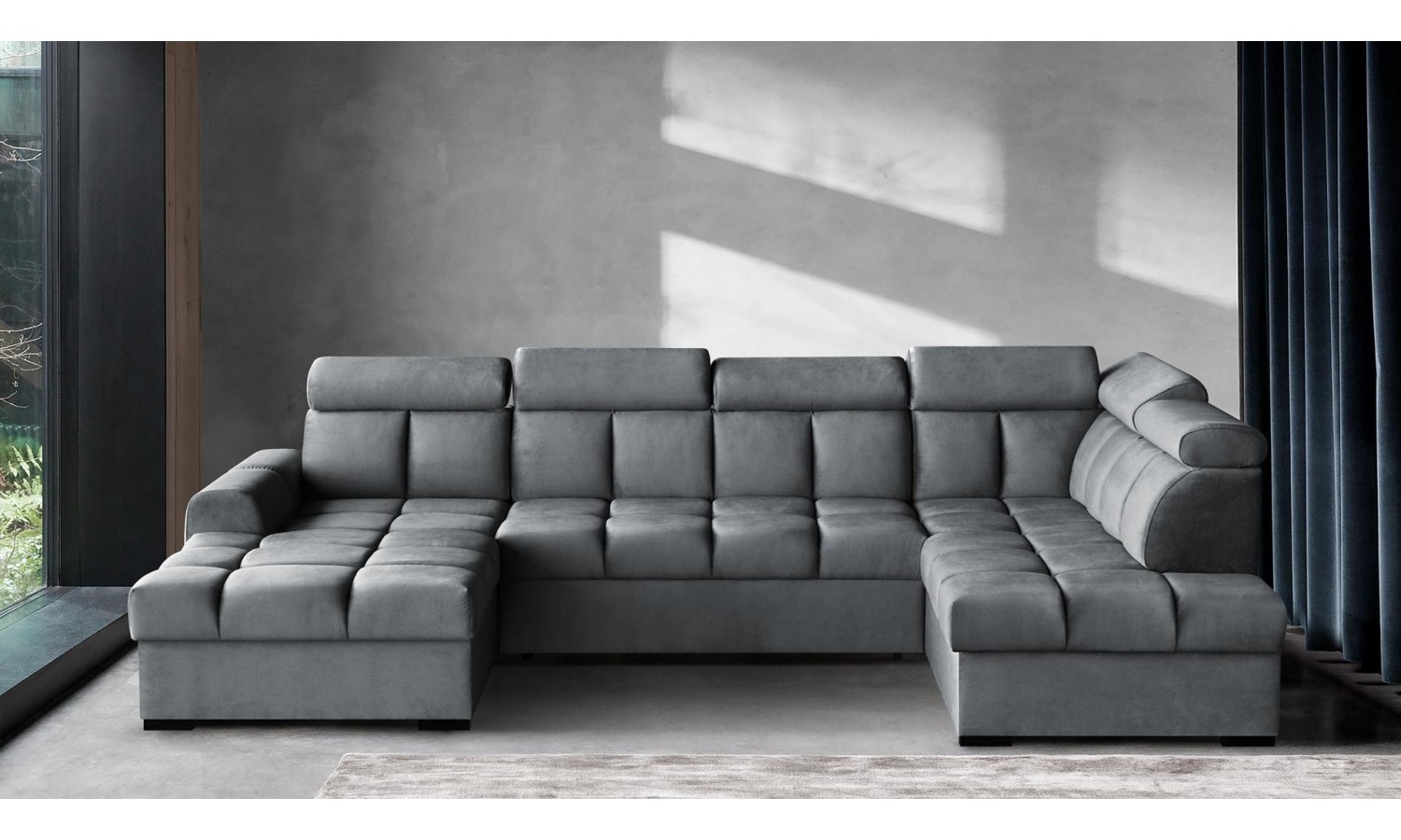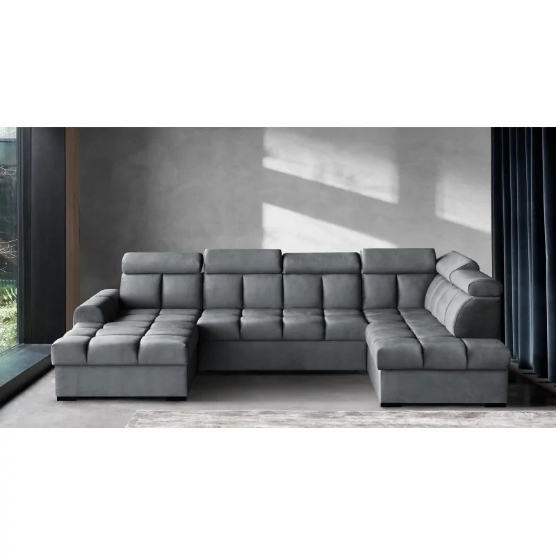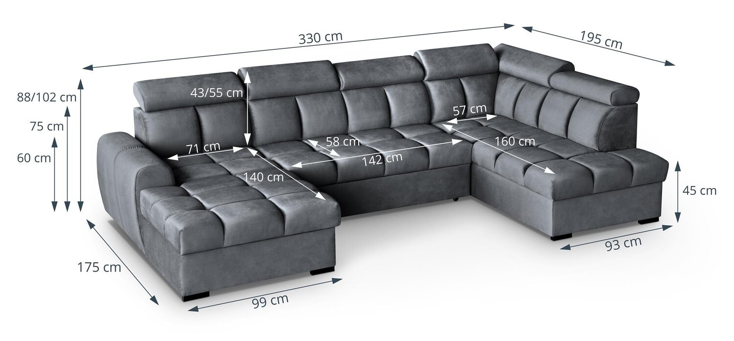 Duży narożnik Storm U o wymiarach 175x330x195 cm to funkcjonalny mebel, który zapewnia przestrzeń zarówno do siedzenia, jak i spania. Jego rozkładana konstrukcja pozwala na szybkie przekształcenie w wygodne łóżko, co jest idealnym rozwiązaniem podczas wizyt gości. Wysokiej jakości tapicerka jest odporna na zabrudzenia i łatwa w czyszczeniu, co sprawia, że narożnik Storm U jest praktyczny i estetyczny. Jego solidna konstrukcja gwarantuje trwałość, a nowoczesny design sprawia, że będzie centralnym punktem każdego salonu.