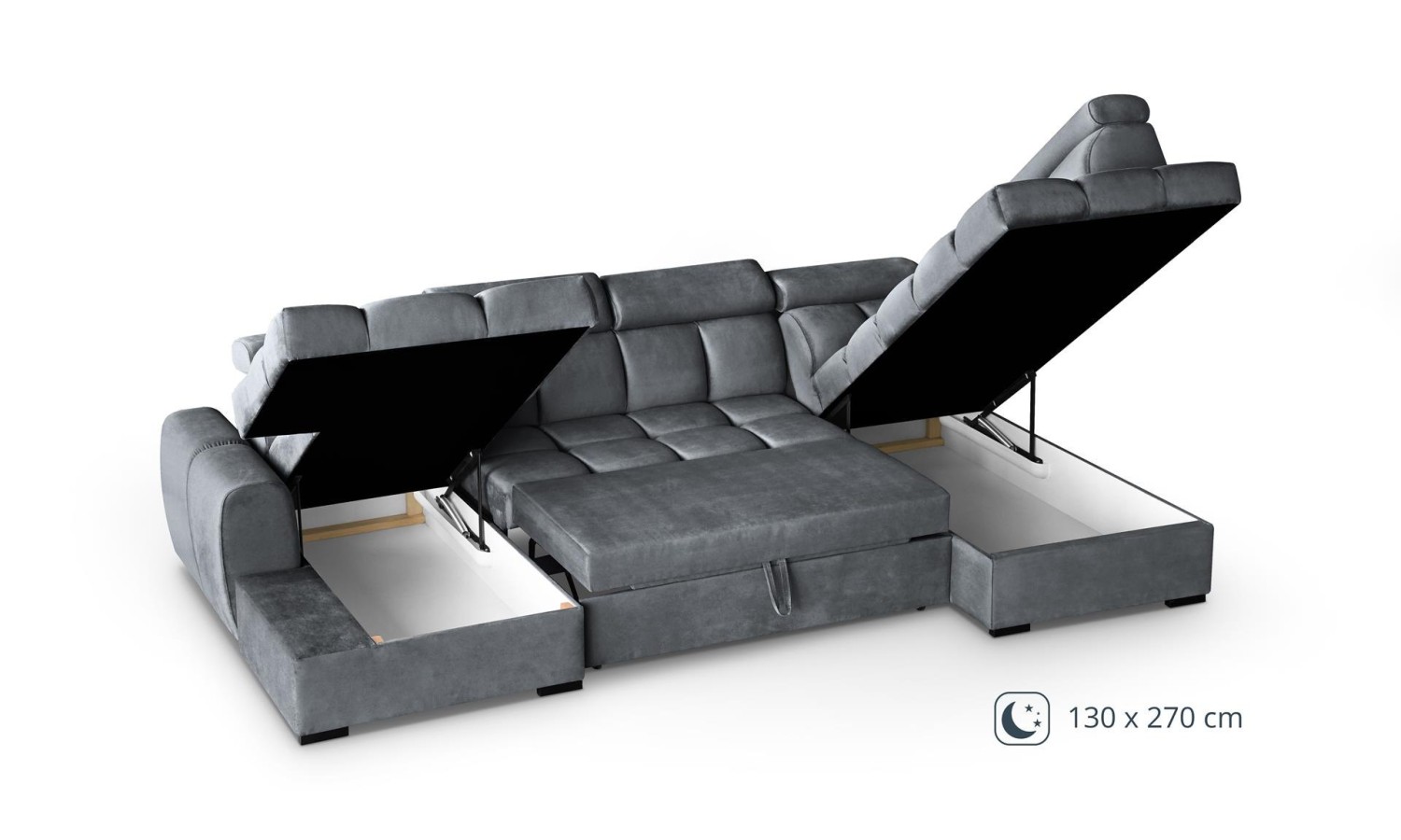 Duży rozkładany narożnik Gomez U 175x330x195 cm - ze schowkiem na pościel