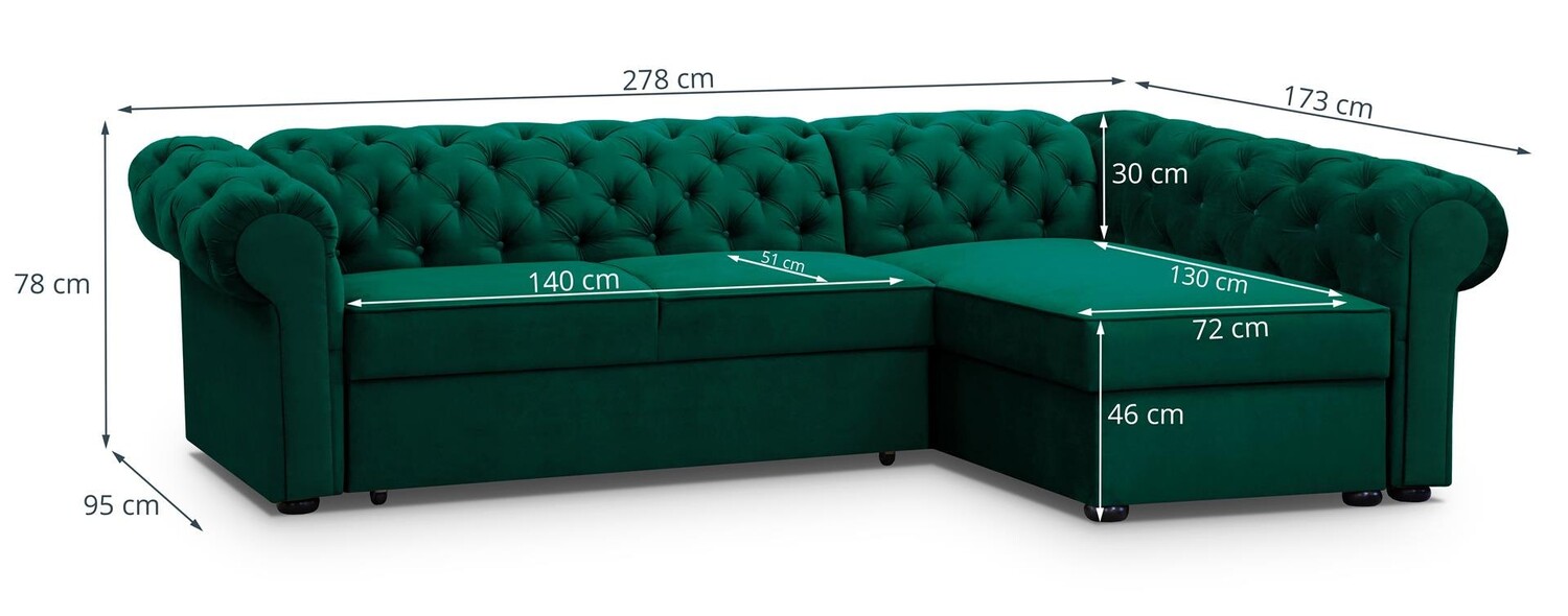 + Narożnik Rimini L 278 x 173 cm, z funkcją spania, guziki szklane: 6460 zł