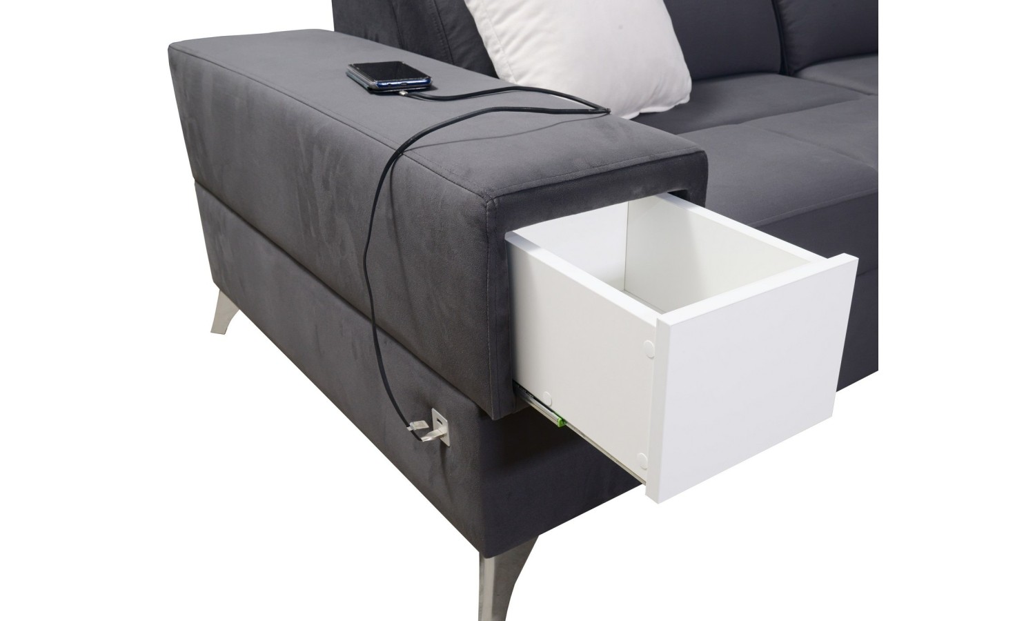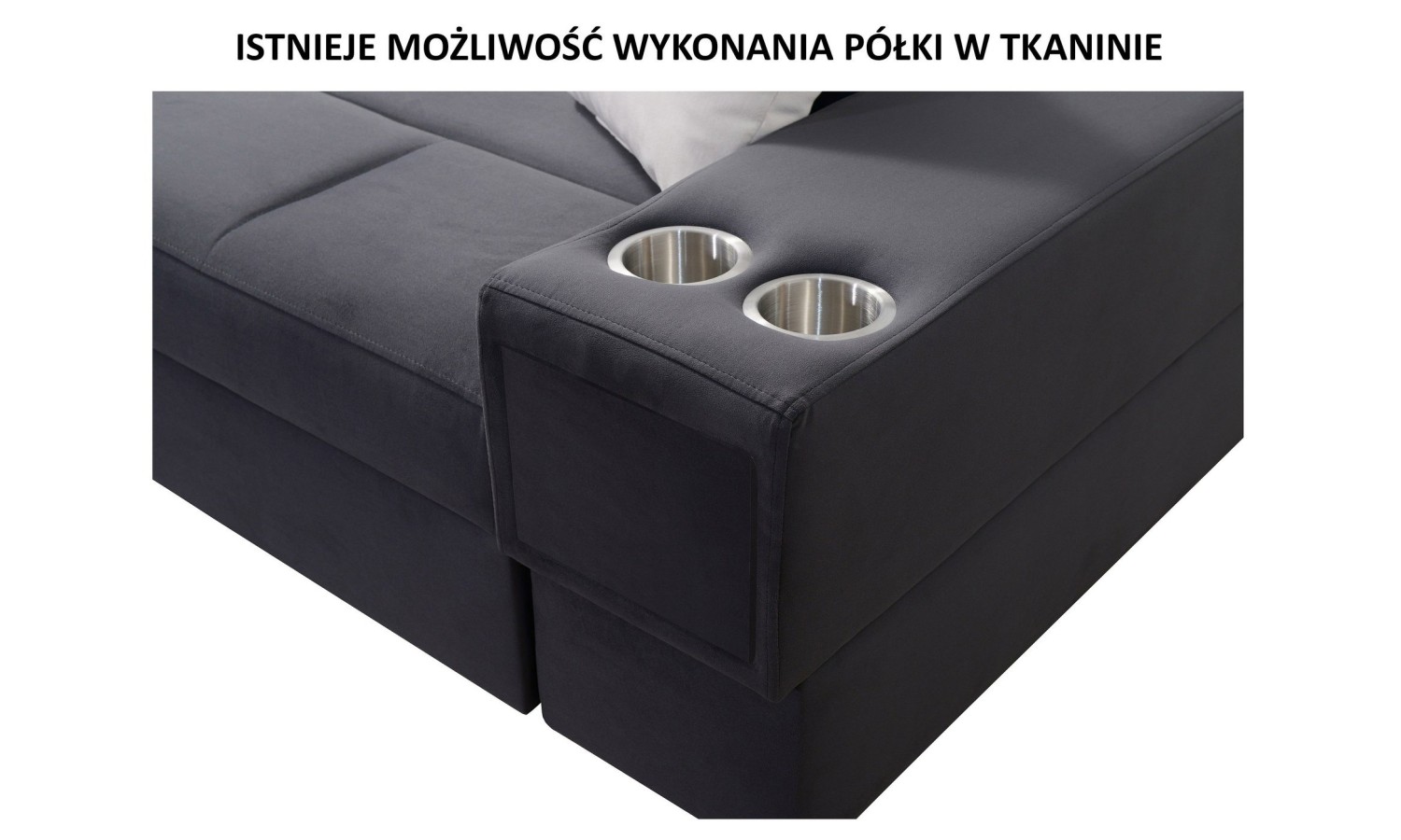 - Możliwość wykonania powierzchni spania w tkaninie takiej, jak na całym narożniku, za dopłatą +140 zł